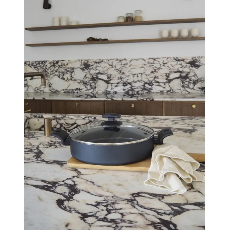 Velegnet til alle varmekilder – også induktionskogeplader. Sautergryden er ikke egnet til at komme i ovnen. Den er meget nem at rengøre, og har desuden ergonomiske greb som ligger godt i hånden. Håndopvask anbefales for ikke at beskadige belægningen.