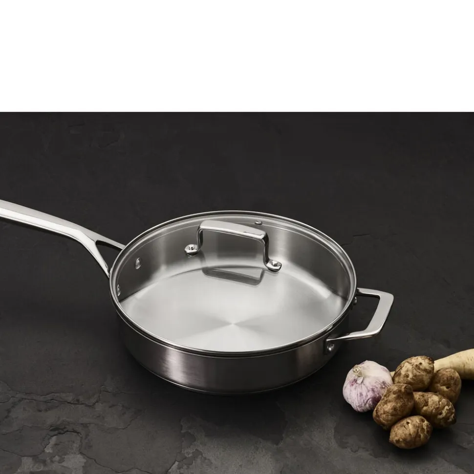 Sauterpanden er perfekt til simreretter og tåler ovn op til 200 grader. Panden har en bundtykkelse på 4,8 mm og består af en aluminiumskerne overdækket af rustfrit stål på begge sider, også kaldet en sandwichbund, hvor det yderste lag er magnetisk. Varmen fordeles og fastholdes jævnt og energieffektivt over både bund og sider, og samtidig er materialet let. Det er desuden meget hygiejnisk og nemt at rengøre. Panden kan bruges på alle varmekilder – fra traditionelle kogeplader, glaskeramiske og induktionskogeplader til el- og gaskomfurer. Velegnet til vask i opvaskemaskine.