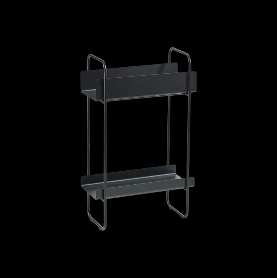 Forskøn et hjørne i stuen eller sig smukt velkommen i entreen. Det smalle konsolbord i pulverlakeret metal kan passe ind i de fleste rum, selv steder hvor gulvpladsen er sparsom. Det leveres med to hylder, som du selv kan placere efter behag og behov. Den ene hylde har høj kant, som kan holde på håndklæder, hue/handsker, hundesnore eller hvad end du har brug for.
