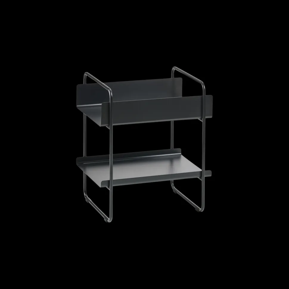 Forskøn et hjørne i stuen eller sig smukt velkommen i entreen. Det smalle konsolbord i pulverlakeret metal kan passe ind i de fleste rum, selv steder hvor gulvpladsen er sparsom. Det leveres med to hylder, som du selv kan placere efter behag og behov. Den ene hylde har høj kant, som kan holde på håndklæder, hue/handsker, hundesnore eller hvad end du har brug for.
