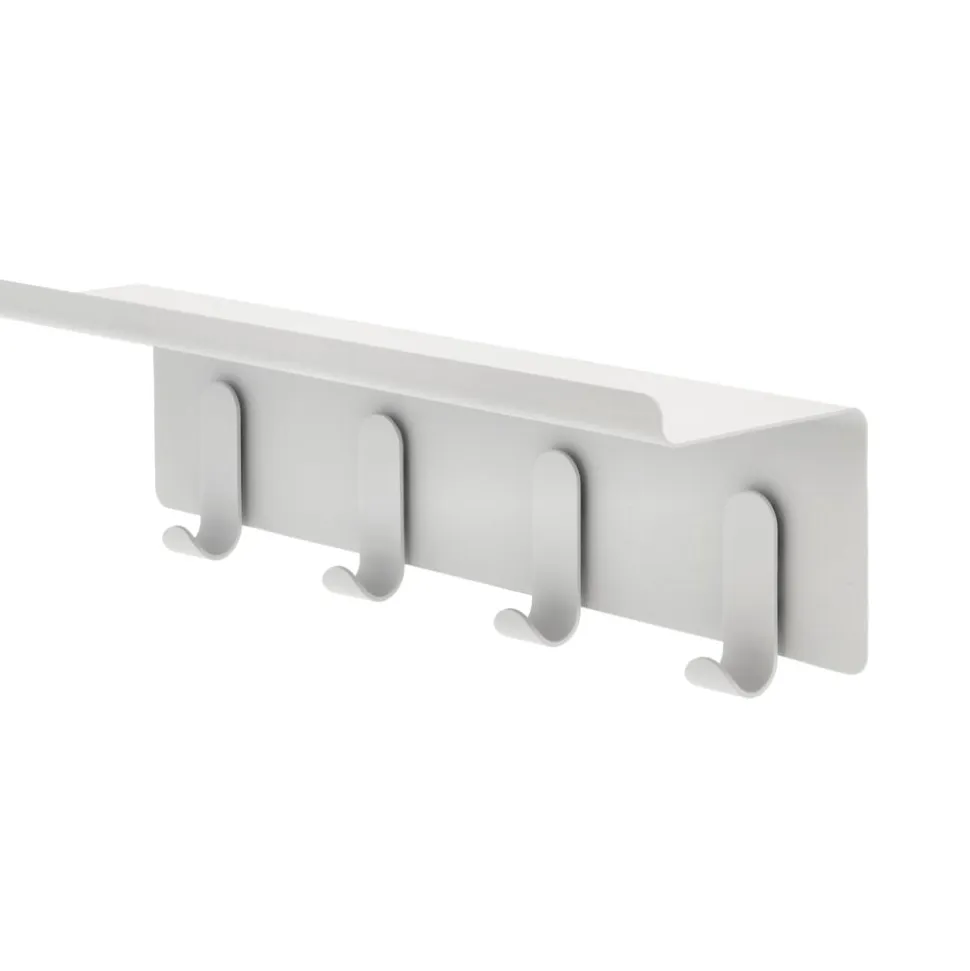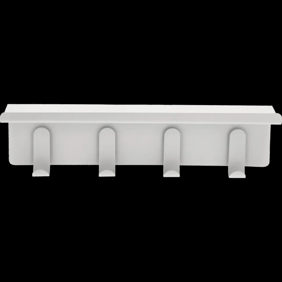 Minimalisme og funktion i smuk forening. Entréhylden med kroge er perfekt til de småting, som alle har, men ingen ved, hvor de skal placere. Vi nævner i flæng nøgler, mobiltelefoner, hundesnore, skohorn og handsker. Der er ingen synlige skruer. I stedet medfølger monteringsvenlige vægbeslag. Udført i pulverlakeret stål.