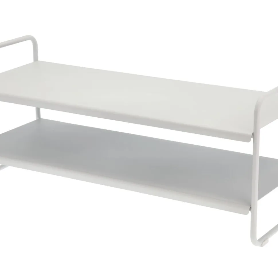 Minimalisme og funktion i smuk forening. Skoreolen har samme bredde som knagerækken og kan passende placeres under. Den er let at flytte, og består af to store hylder med plads til i alt seks par sko samt evt. flade sandaler og tøfler under. Skoreolen er stabil, men dens åbne ender og de nærmest svævende hylder giver et let udtryk. Udført i pulverlakeret stål.