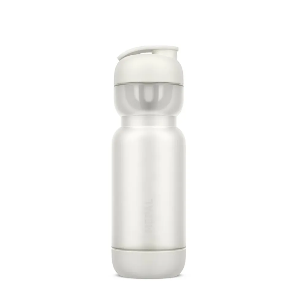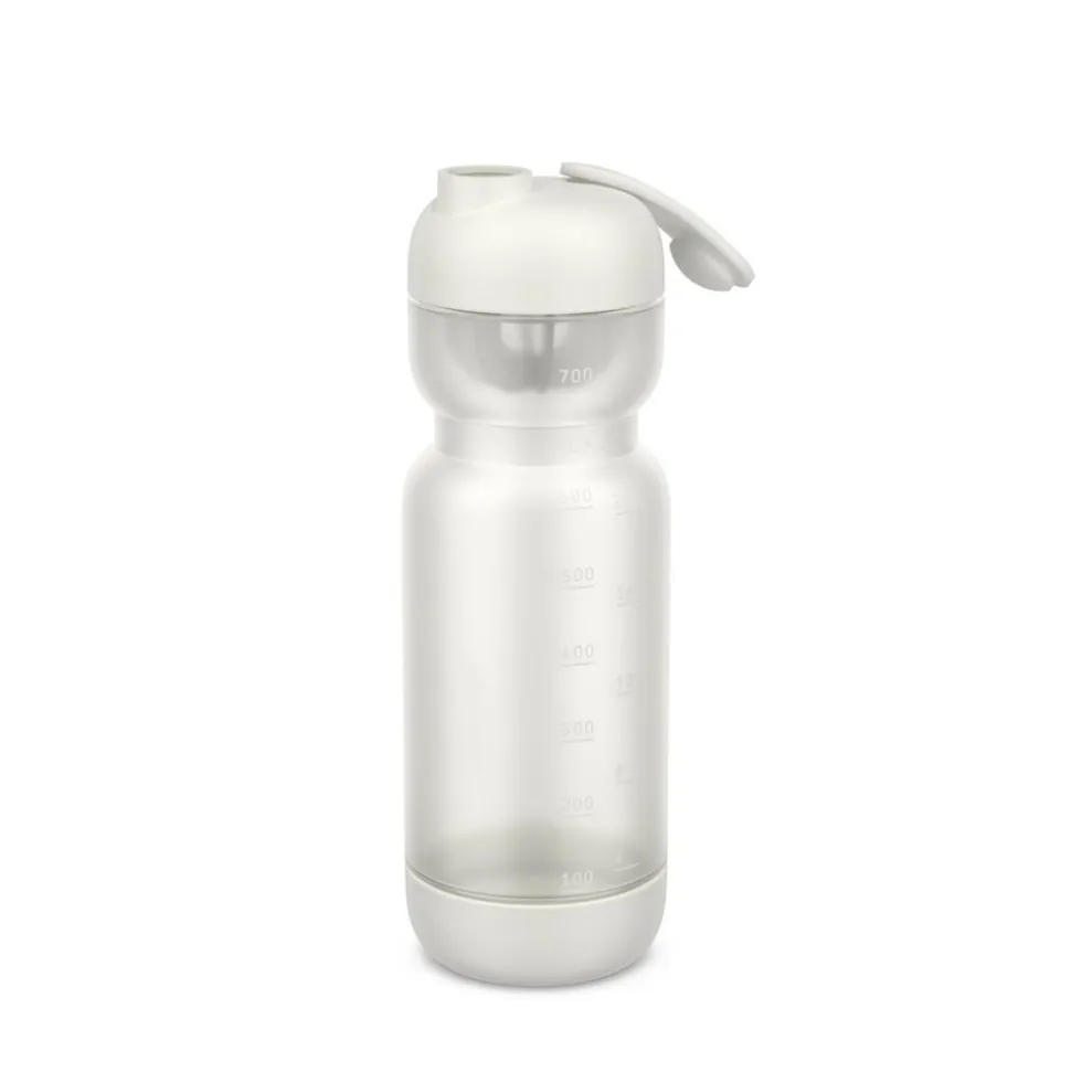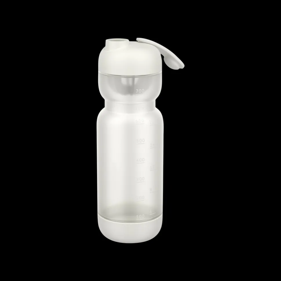 Active Shake sportsflaske med lækagesikker silikonelukning rummer hele 800 ml. Flasken er velegnet til eksempelvis proteinshake, idet den har et integreret mikserelement, der hjælper med at ryste væske og pulver til en homogen shake uden klumper. Flasken har tydelige målemarkeringer, og bunden kan afmonteres, så det er endnu nemmere at gøre flasken ren.
