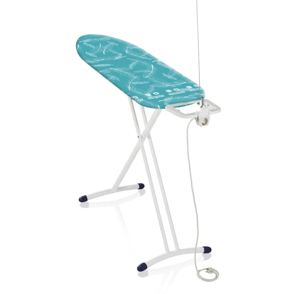Designet til brug med både standard- og dampstrygejern og forsynet med fast metalholder til strygejernet, stikkontakt og kabelholder, der forhindrer, at ledningen er i vejen under strygningen.