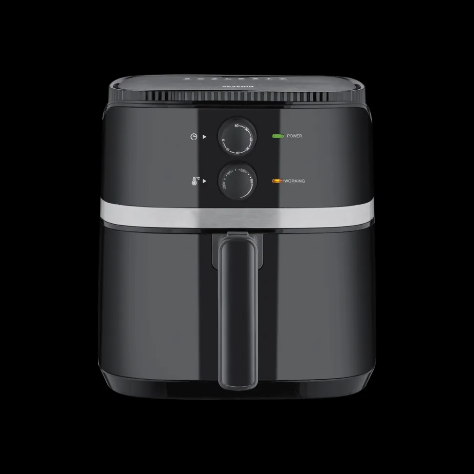 Airfryer til alsidig og hurtig tilberedning uden tilsætning af olie eller fedtstof. Stegekurven rummer op til 5 liter, hvilket svarer til 750 g pommes frites. Temperaturen kan justeres fra 80 til 200 grader, og airfryeren er forsynet med tænd/sluk-knap, indikatorlys og 60 minutters timer. 1500 watt. Sort.