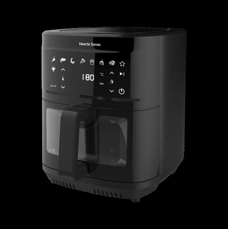 Denne airfryer på 9 liter er til store portioner og sundere madlavning. Temperaturen kan justeres fra 80 til 200 °C og timeren kan sættes op til 60 minutter, så der er styr på alt fra sprøde pommes frites til saftige kyllingestykker. Varmeelementer i top og bund sikrer en jævn tilberedning, mens det smarte vindue gør det nemt at følge med i madlavningen undervejs.