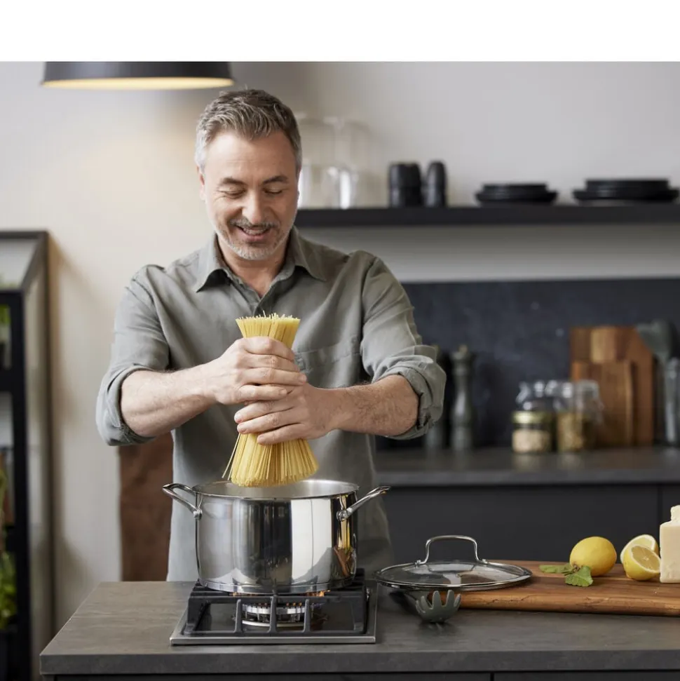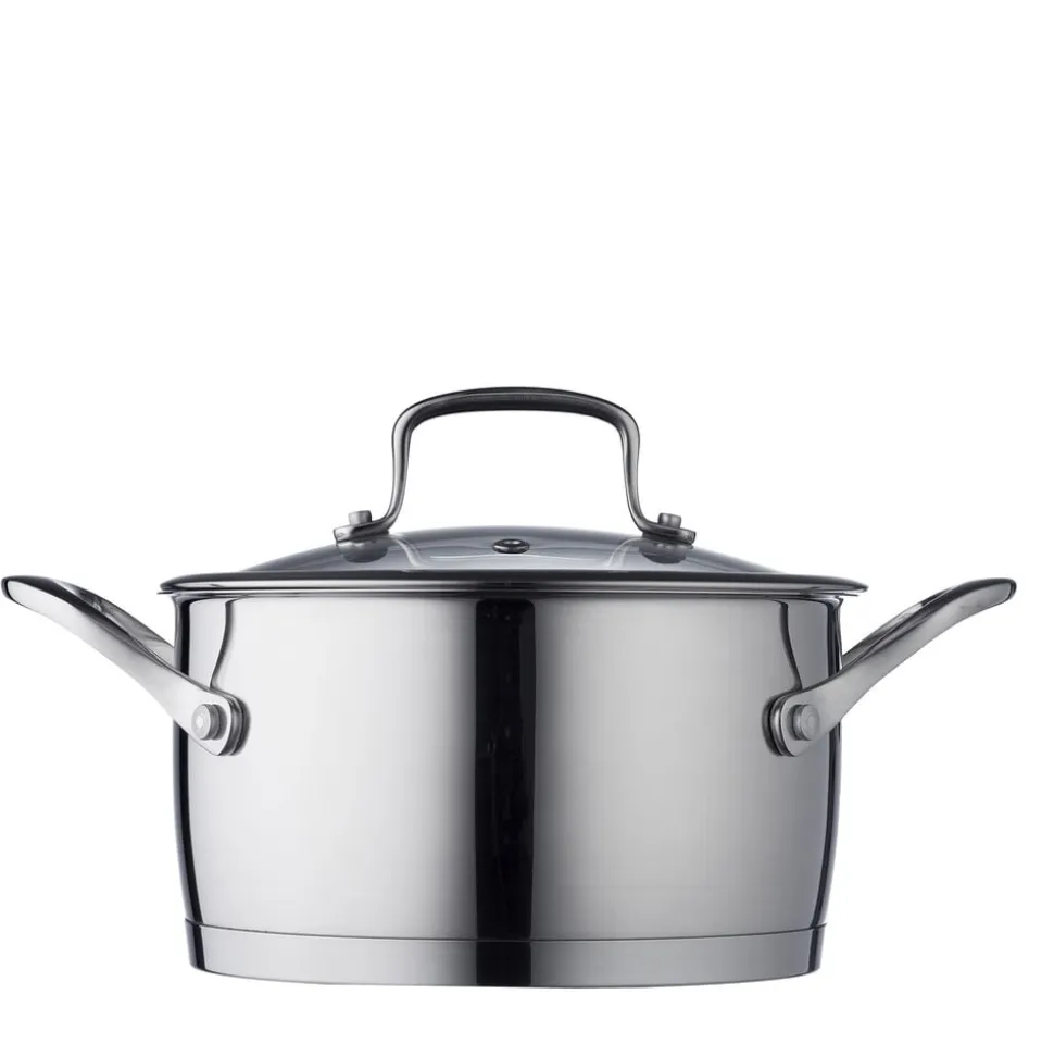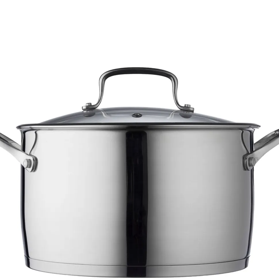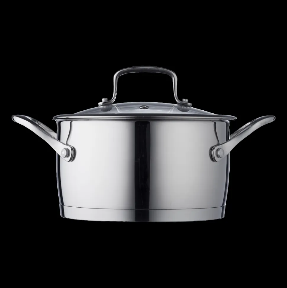 Gryde fremstillet i satinpoleret rustfrit stål. Bunden har en aluminiumkerne, som sikrer, at varmen fordeles jævnt og effektivt. Gryden er velegnet til alle varmekilder, tåler op til 220 grader C i ovnen og kan gå i opvaskemaskinen. Gryden tåler alle typer redskaber, har tilhørende glaslåg og kan indeholde 6,2 liter.