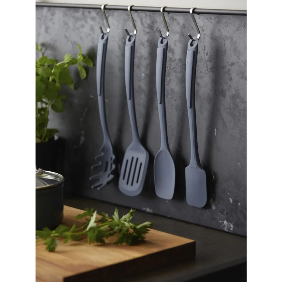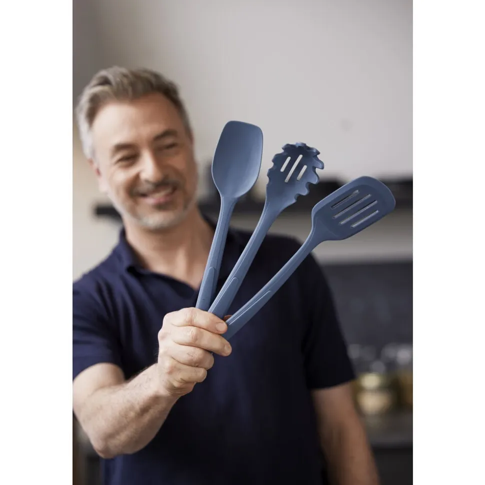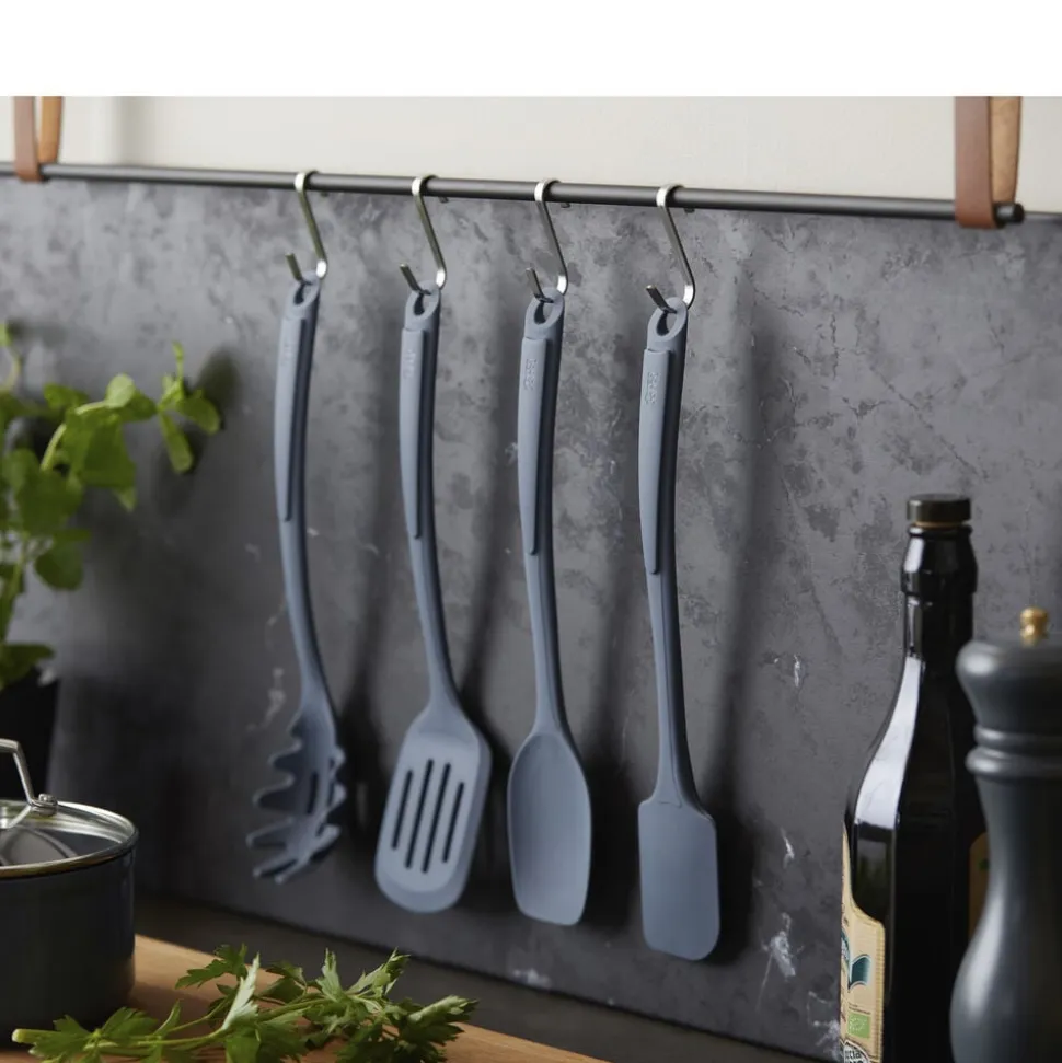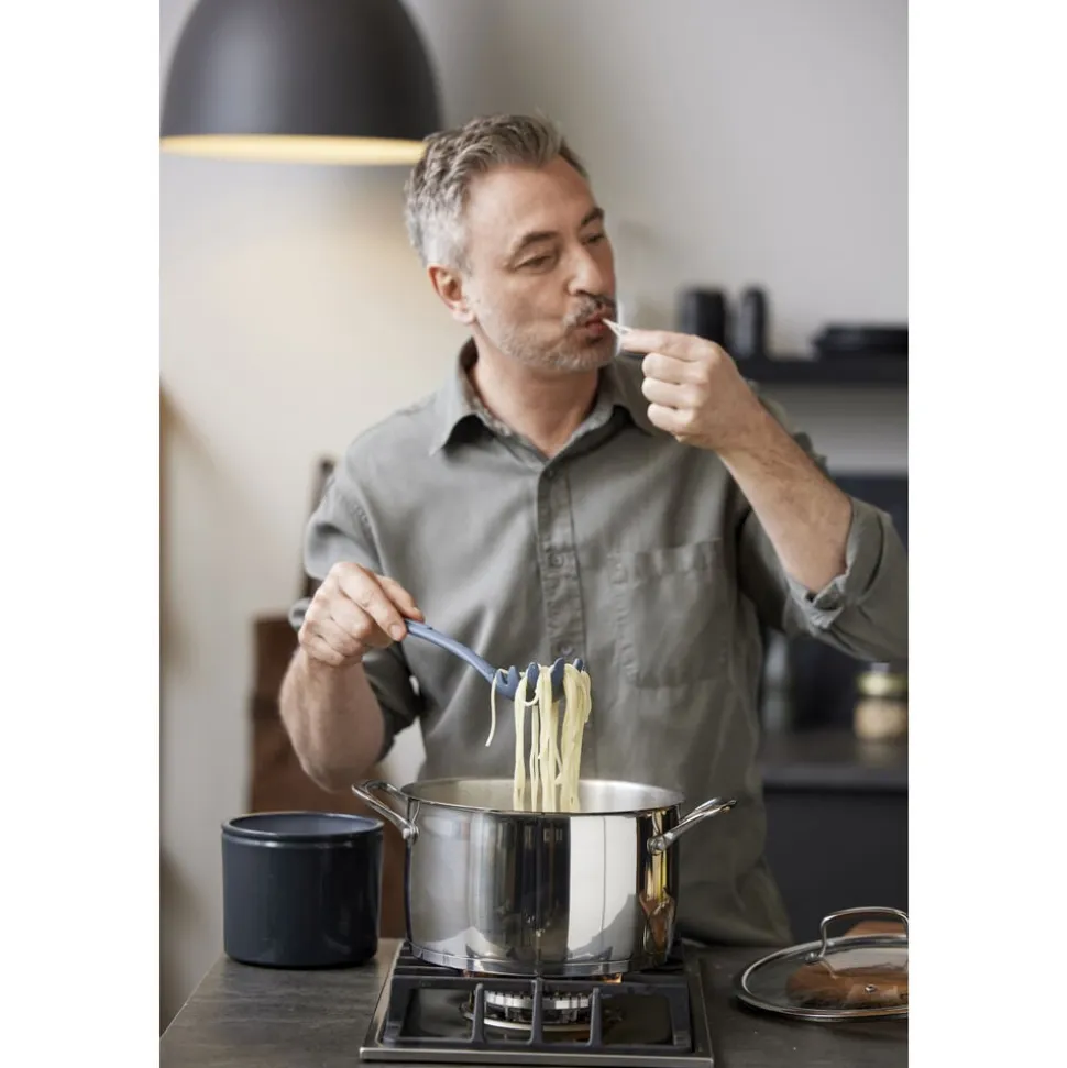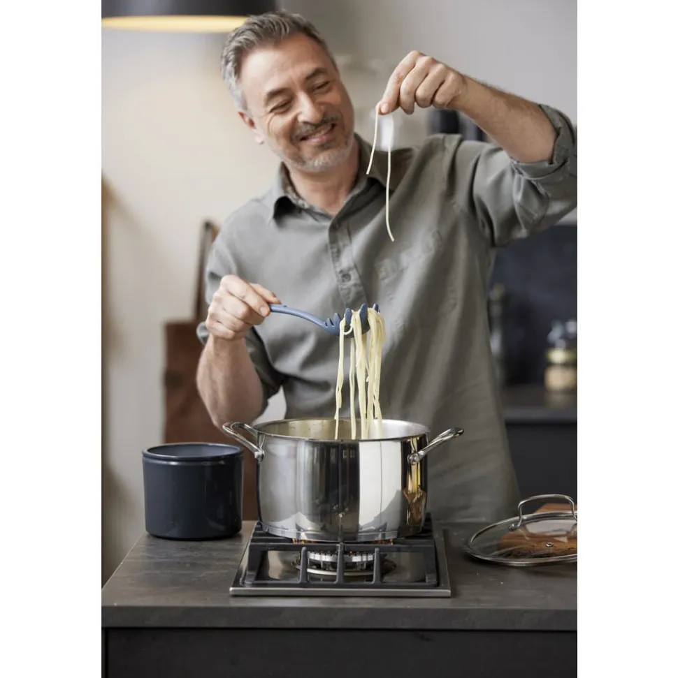Gode resultater i køkkenet starter med godt køkkenudstyr. Med denne enkle spaghettiske er du sikret høj kvalitet og brugervenligt design. Spaghettiskeen er fremstillet af metal med en silikonebelægning, der giver et godt greb, når du skal have fat i både pastaskruer og spaghetti. Skeen har praktiske huller i midten, så overskydende vand nemt hældes fra. Velegnet til opvaskemaskine. Tåler temperaturer op til 230 grader C.