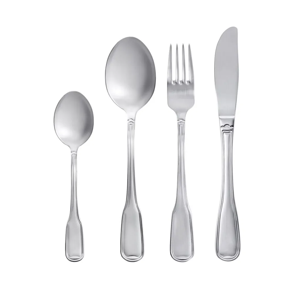 Attaché står for et rent design inspireret af barokken. Bestikket er skabt i traditionel stil med en dobbeltrillet kant og produceret i matpoleret rustfrit stål. Tåler opvaskemaskine.