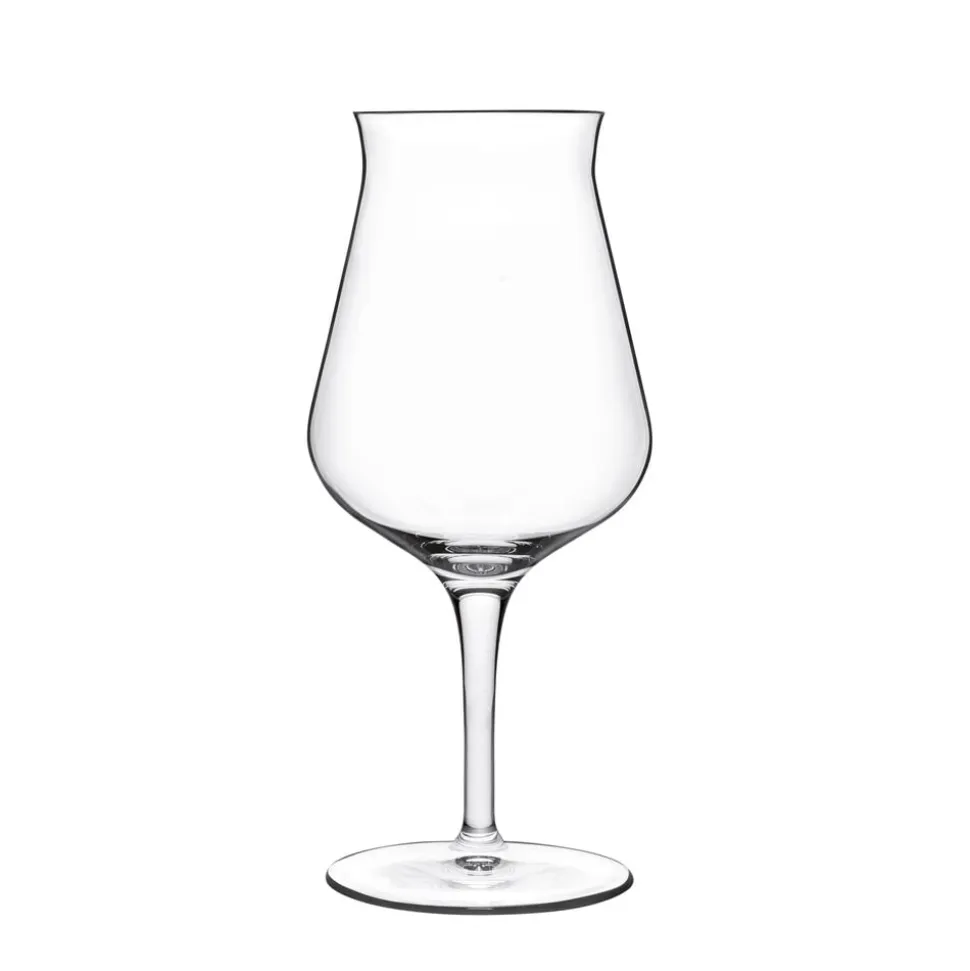 Allround glas med stilk til sensorisk analyse af alle specialøl. Glasset er designet som et let og elegant teknisk instrument, der er det perfekte værktøj for alle ølbryggere. Glasset samler skummet i et fint og kompakt lag og forbedrer enhver specialøls specifikke aromaer ved at karakterisere det aromatiske spektrum, så dette stilkglas får en fordel i sammenligning med traditionelle ølglas. Fin, laserudskåret kant (behagelig smag: ingen turbulens). Den udadvendte kant dirigerer øllen til alle dele af tungen med reduceret hastighed. Aroma-kontrol kurve. Rund overflade for at undgå spredning af aromaer, mens glasset bliver fyldt. Flad og stabil bund.