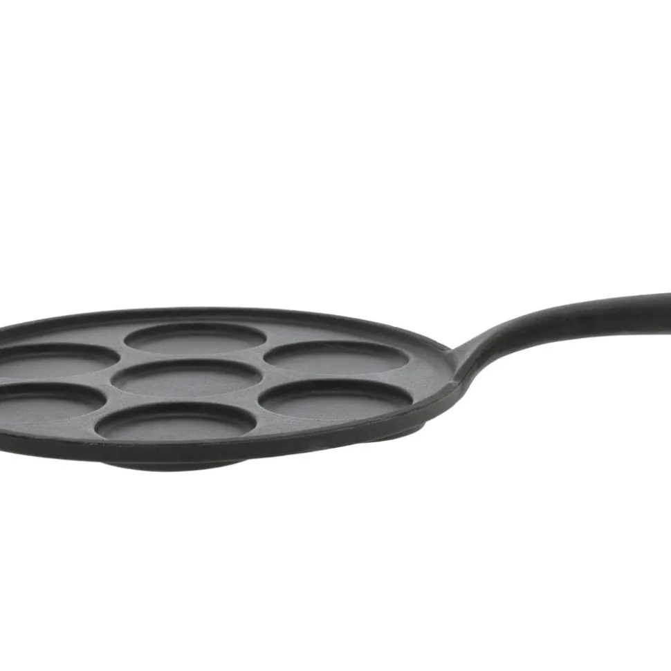 Blinispande med 7 huller, fremstillet i oliebehandlet støbejern. Oliebehandlingen lægger bunden til en naturlig belægning, som giver gode stegeegenskaber, og støbejernet fastholder og fordeler varmen jævnt og effektivt. Blinispanden kan bruges til andet end traditionelle blinis, fx små æggepandekager, kartoffelrøsti, tortillas og spejlæg med krydderier.