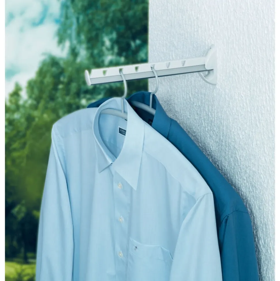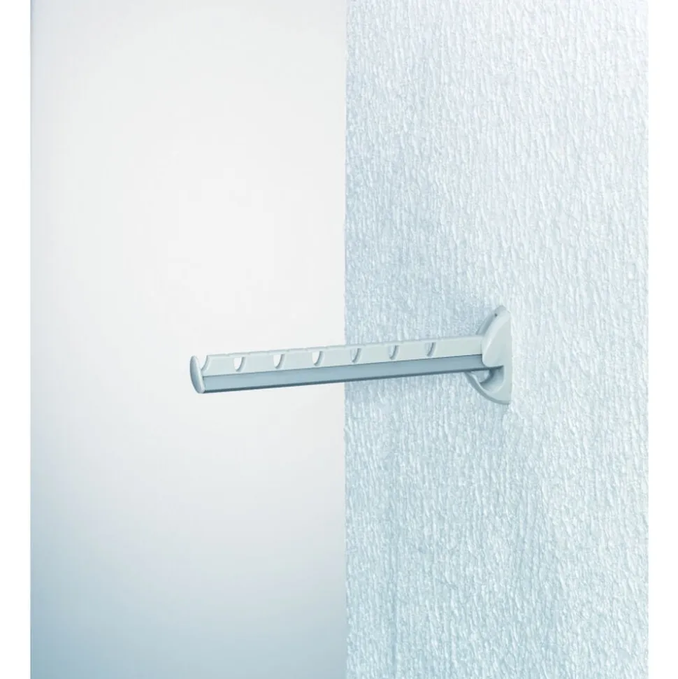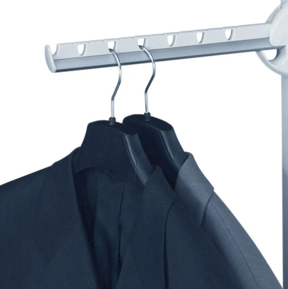 Længde 31 cm, plads til 7 bøjler, kan foldes op efter brug.