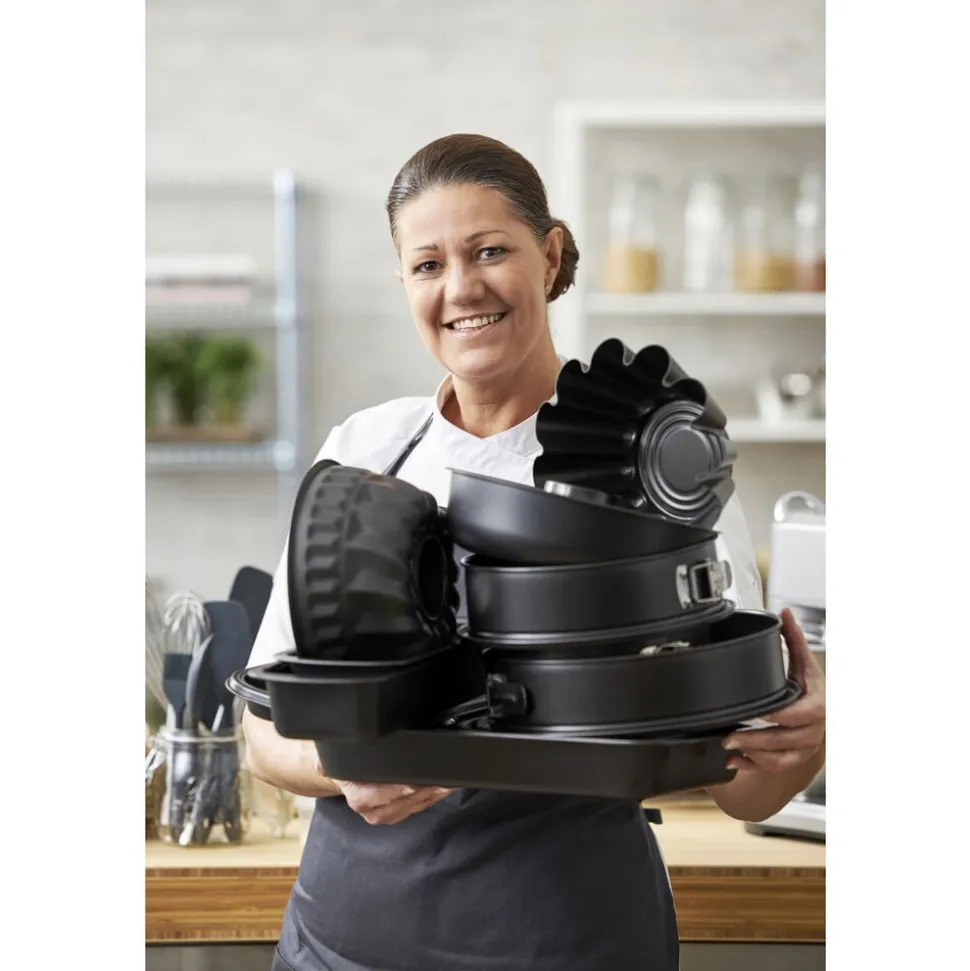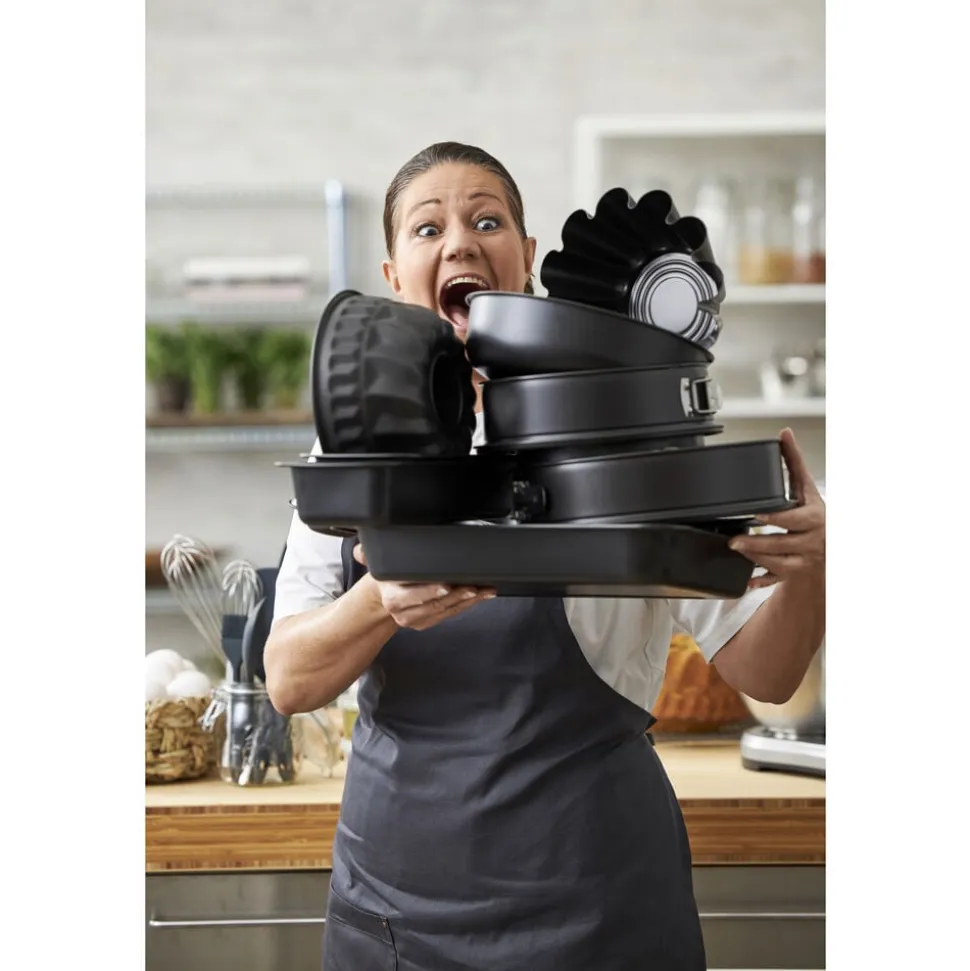 Smør formens indvendige side og bund med bagespray eller neutral olie ved bagning. Formen er fremstillet af ECCES stål, en europæisk produceret ståltype i høj kvalitet. Stålet er bygget op i to lag, først et støttende, forstærket bundlag og herefter endnu et lag for yderligere forstærkning. Det er meget let og fleksibelt, hvilket giver en mere ensartet overflade og bedre varmefordeling. Formen vaskes før brug første gang. Den keramiske belægning er fremstillet af råvarer, der ikke indeholder PFAS.