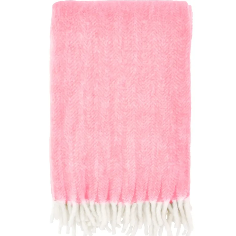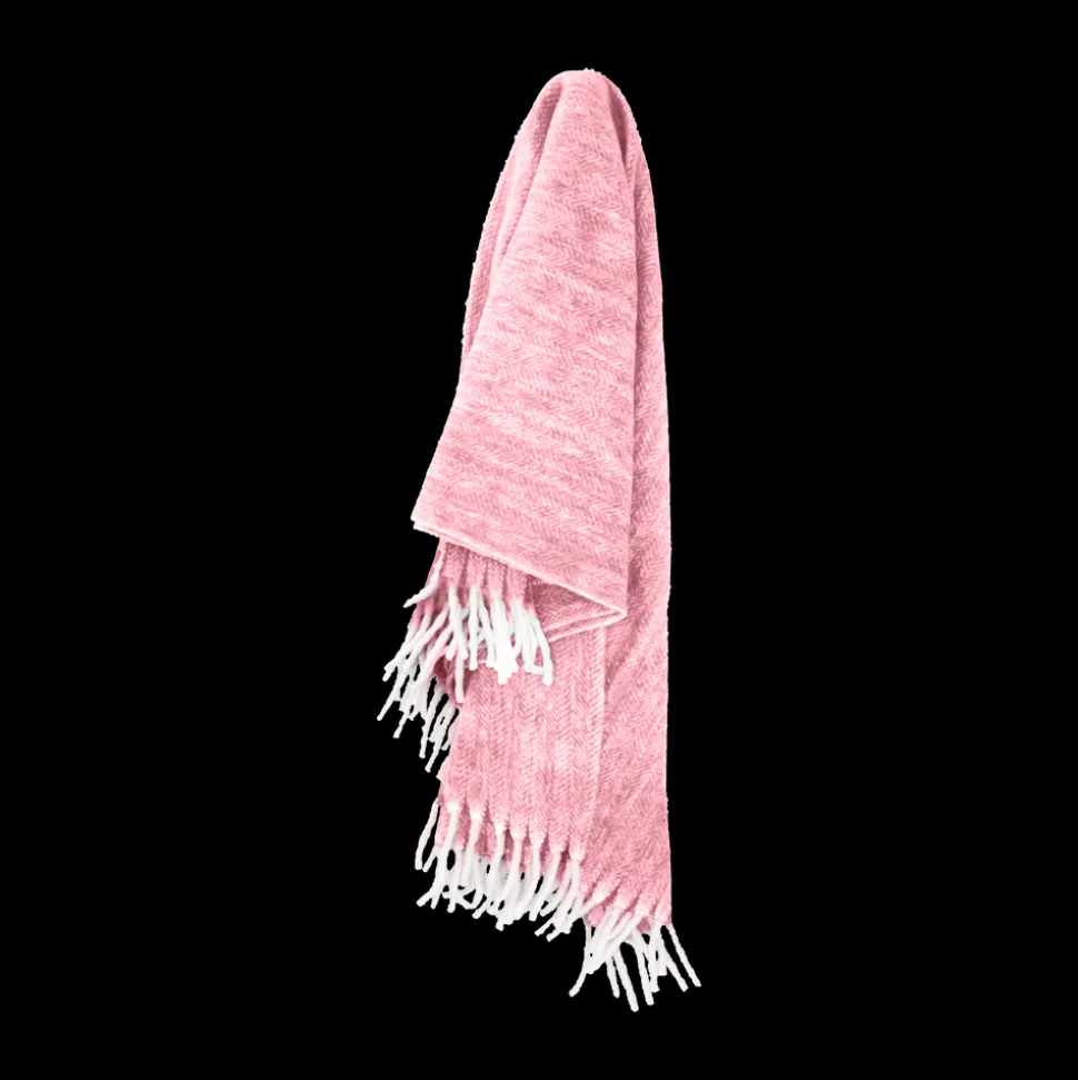Strikmønstret er et traditionelt, tidløst sildebensmønster. Tæppet er af akryl og ekstra stort, 150 x 200 cm, med lange, tykke frynser i begge ender.