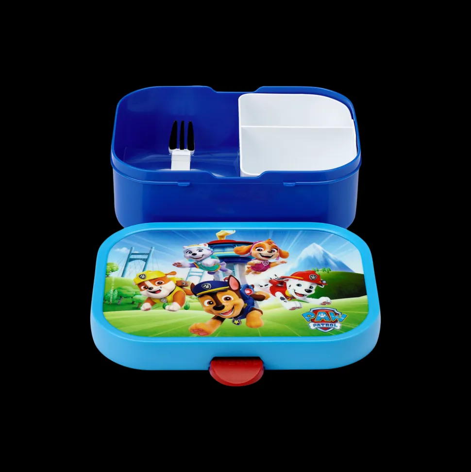 Robust og rummelig Mepal madkasse med Paw Patrol Pups-motiv. Madkassen har en smart og effektiv lukkemekanisme, som er nem for børnene at betjene. Madkassen måler 17,5 x 13 x 6 cm og indeholder en lille gaffel og en aftagelig indsats med to små rum.