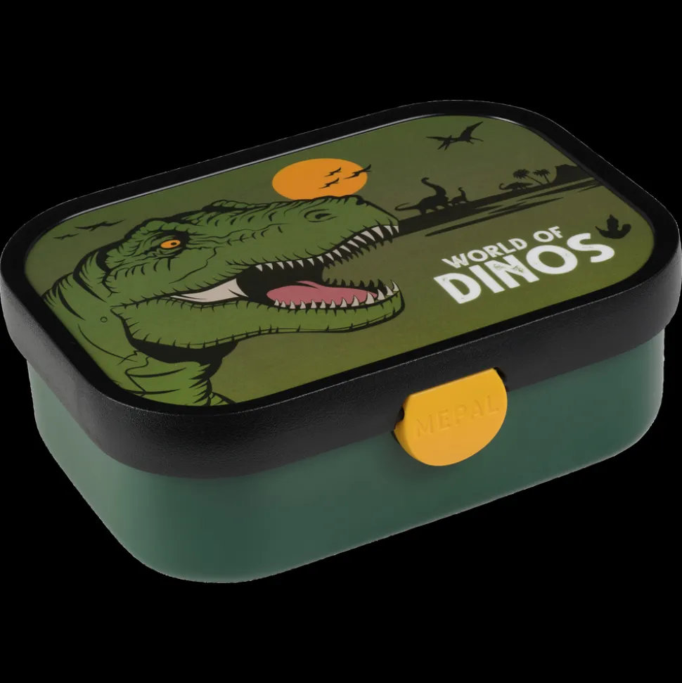 Madkasse med flotte illustrationer af klassiske dinosaurer. Den har en ny, forbedret lukkemekanisme, som er endnu nemmere for børnene at betjene. Madkassen måler 17,5 x 13 x 6 cm og indeholder en lille gaffel og en aftagelig indsats med to små rum.