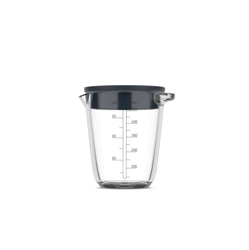 Målekanden i Chef it-serien måler op til 500 ml med en letaflæselig skala på siden af kanden. Skalaen angiver også fl oz. Målekanden har en funktionel hældetud. Glaskanden tåler ovnvarme, dog uden plastlåget.