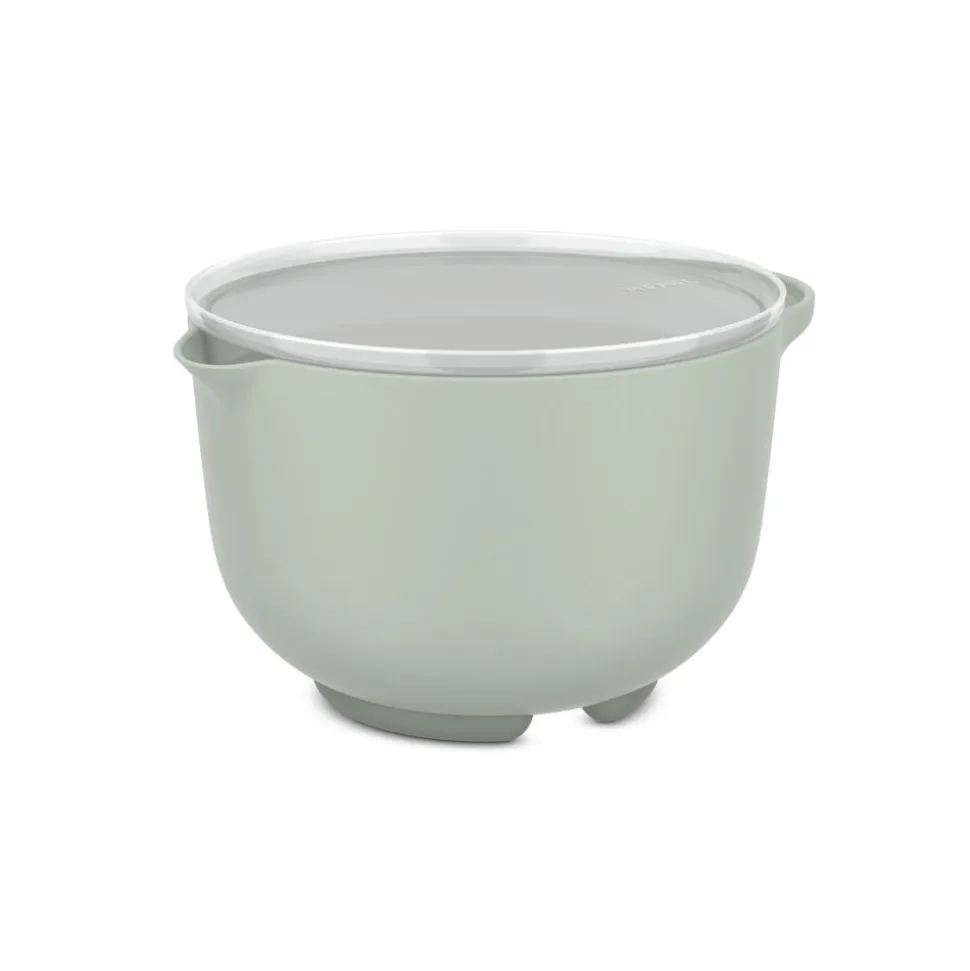Røreskålen er lavet af pp, et plastmateriale, der tåler mikrobølgeovn og temperaturer op til 110 °C. To smarte åbninger i den skridsikre bundring under røreskålen forhindrer, at der samler sig vand, når du sætter skålen på hovedet i opvaskemaskinen.