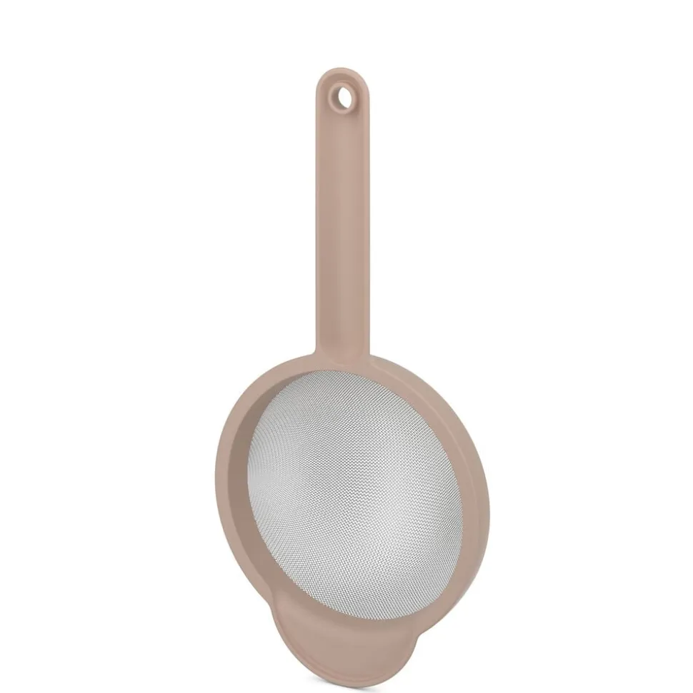 Sigten i Mepals Chef it-serie er fremstillet af pp og rustfrit stål. Diameteren er 16,7 cm, og sigten har både et godt langt greb og et stort støttehåndtag på modsatte side, så sigten hviler stabilt på røreskålen, når du sigter ingredienserne ned i dejen.