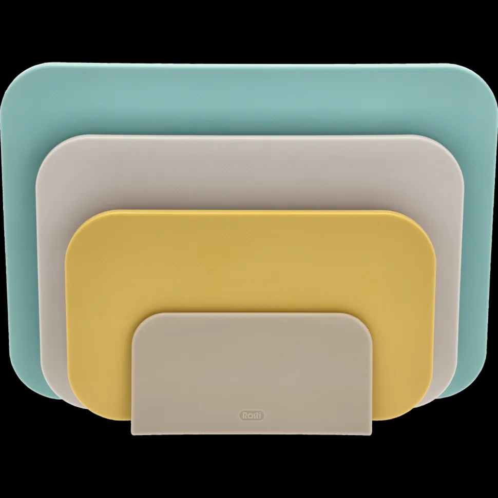 Choptima skærebrætter i størrelserne 26,5 x 16 cm, 30,5 x 20,5 cm og 35,5 x 25,5 cm og farverne curry, humus og nordic green.