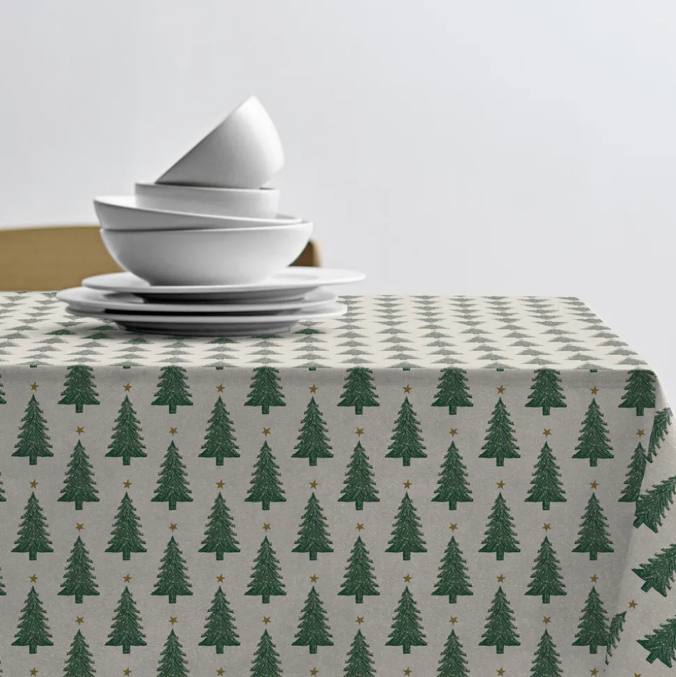 Skab den perfekte juleatmosfære med Södahls Christmas Trees akryldug. Dette charmerende design i pine green med fine juletræer og stjerner bringer hygge og julestemning til dit hjem. Den smudsafvisende akrylbelægning gør dugen nem at rengøre, hvilket gør den ideel til både julefrokoster og hverdagsbrug i den travle juletid.