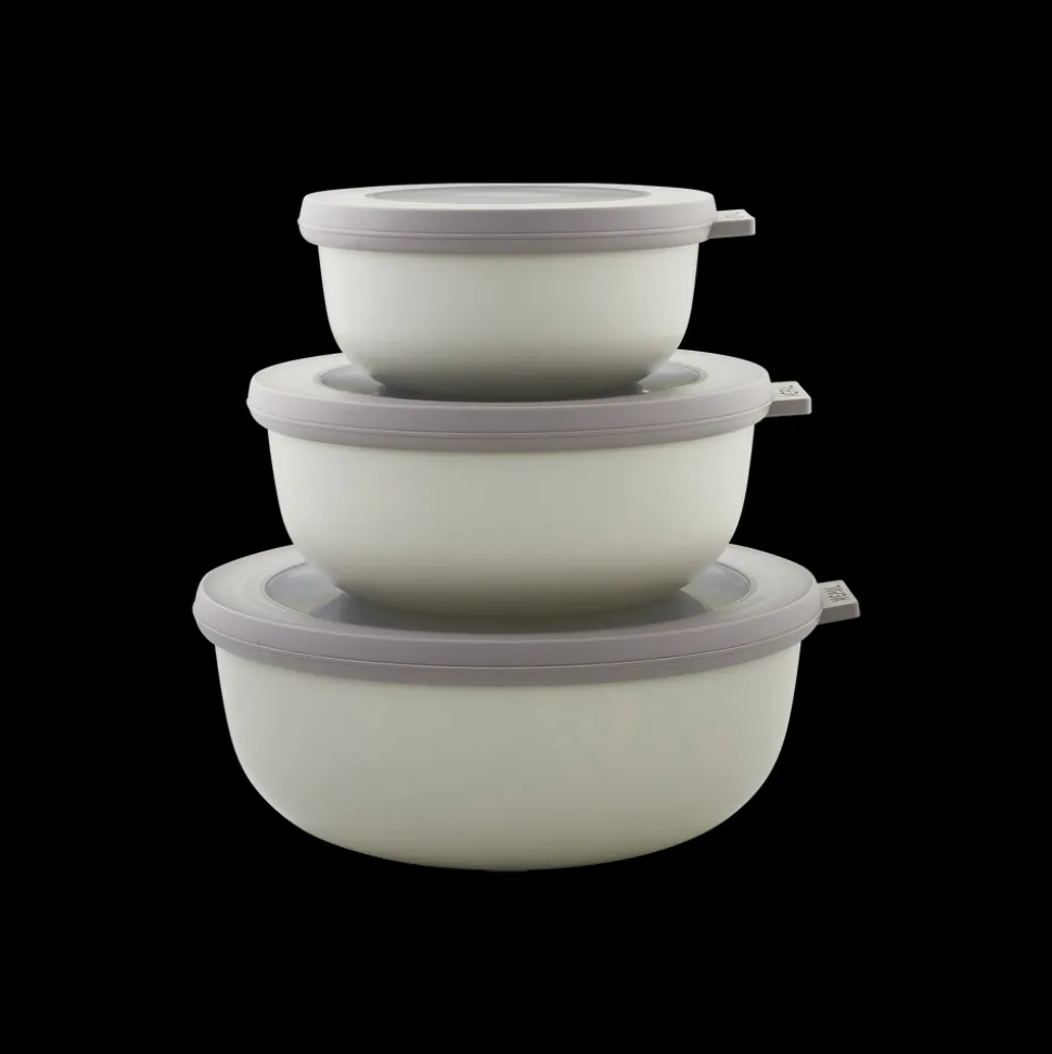 Mepal Cirqula opbevarings- og serveringsskålesæt – rummelig, praktisk og dekorativ i kølige, nordiske farvetoner. Sæt bestående af 350 ml, 750 ml og 1250 ml.