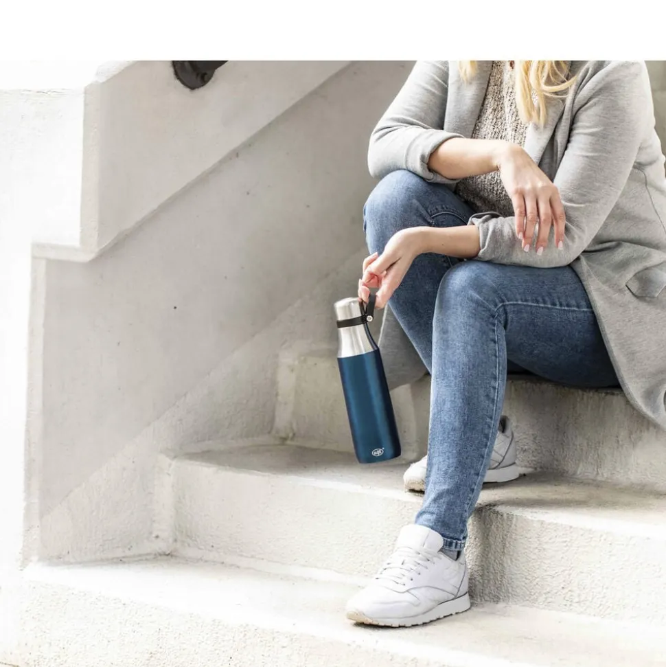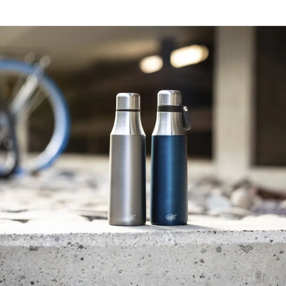 City drikkeflaske i originalt Alfi-design, der er perfekt at tage med på farten. Drikkeflasken er lavet af robust, dobbeltvægget rustfrit stål med låg i høj kvalitet og praktisk bærehank. Holder varmt i op til 8 timer og koldt i op til 16 timer. Holder fuldstændigt tæt selv med kuldioxidholdig væske. Fri for BPA. Tåler opvaskemaskine. Modstandsdygtig overflade takket være colourProtect™ – slag- og brudsikkert design. Holdbar og genbrugelig. Godt alternativ til engangsplastflasker.