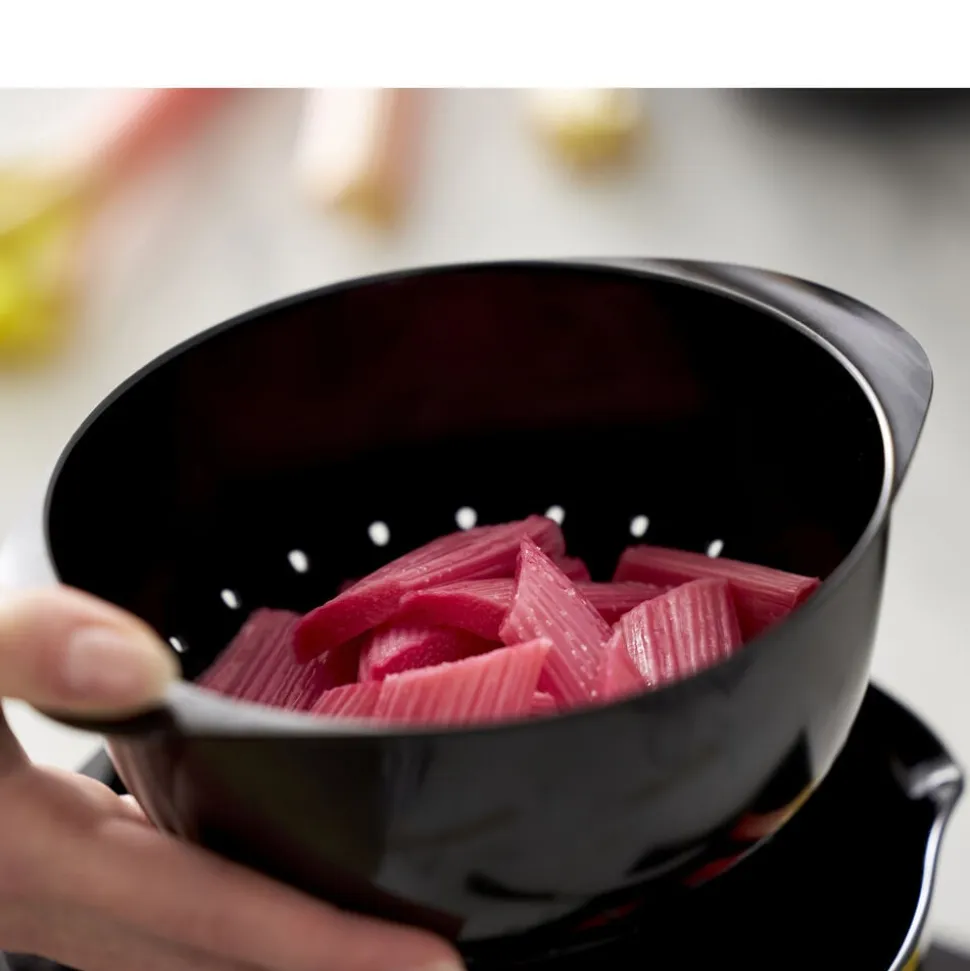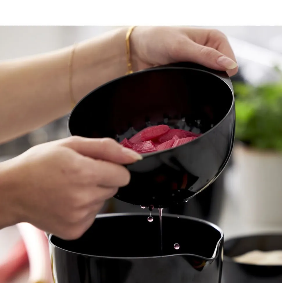 Rosti-dørslaget er perfekt sammen med Margrethe-skålen i samme størrelse. Vælg en matchende skål eller lav en spændende kombination ved at blande farverne. Fås også i en 1,5 liters udgave. Velegnet til opvaskemaskine, men kan ikke bruges i mikroovn og fryser. Holder formen selv ved opvarmning, hvilket er en stor fordel i forbindelse med madlavning. 5 års garanti.