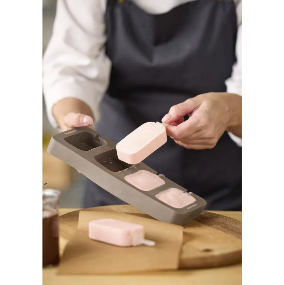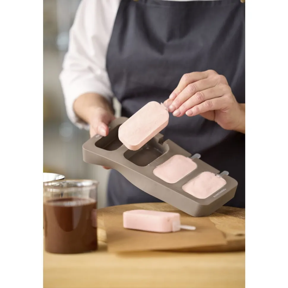 Denne ispindeform i blød og lækker silikone har plads til fire hjemmelavede ispinde. Fyld formen med din favoritsaft, smoothie eller isblanding. Sæt de medfølgende plastikpinde i formen, og lad fryseren færdiggøre arbejdet for dig. Når sulten melder sig, vipper du nemt dine ispinde ud af den fleksible silikoneform. Formen tåler fryser (max -20 °C) og kan nemt rengøres i opvaskemaskinen.