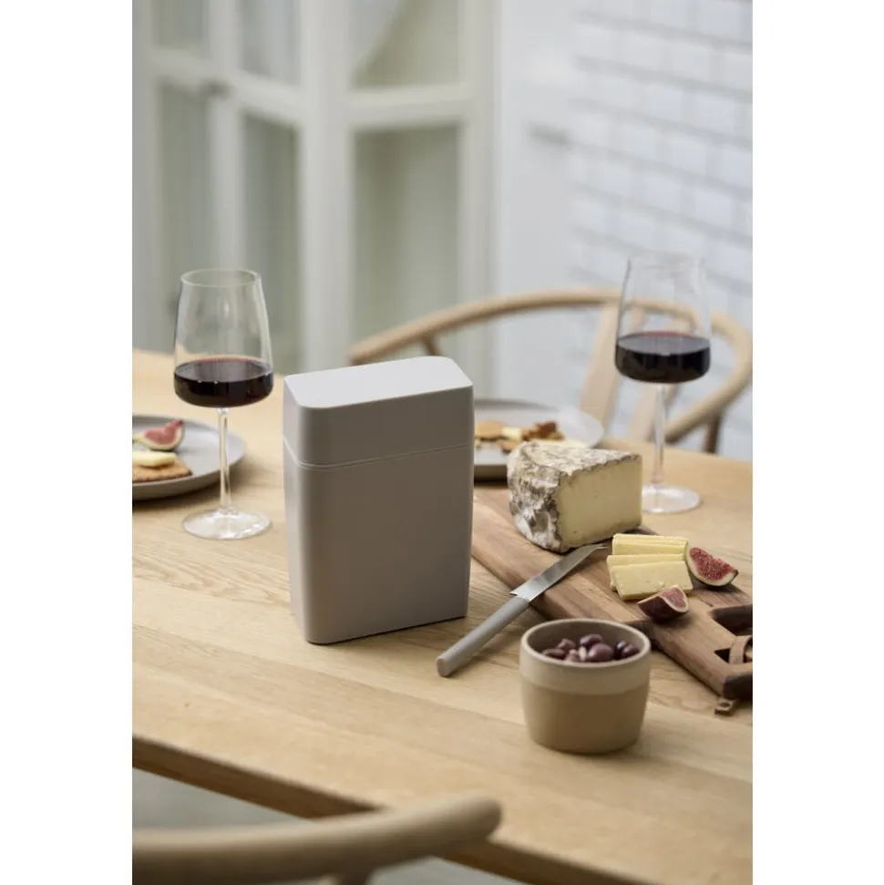 Osteboksen med integreret osteskærer giver dig både hygiejnisk opbevaring og brug, uden at du behøver røre ved osten. For hver skive, du skærer, trækkes bunden opad, så osten hele tiden er klar til den næste, der er lækkersulten. Osteboksen kan rumme et stykke ost, der måler 8 x 9,3 cm og har en højde på 12,5 cm. Skærestrengen kan udskiftes, hvis det bliver nødvendigt.