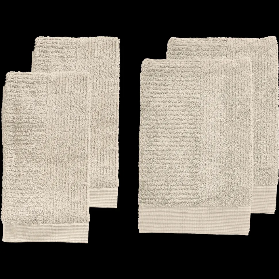 To håndklæder 50 x 100 cm og to badehåndklæder 70 x 140 cm. Classic-håndklædet bevarer sin form, høje sugeevne, farvemæthed og store fyldighed vask efter vask. 100 % OEKO-TEX-certificeret bomuld, der kan vaskes ved 60 °C.
