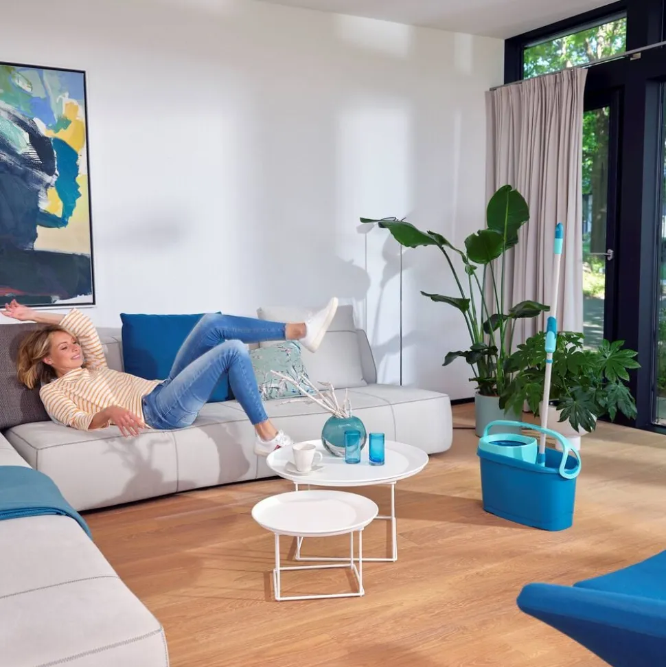 Centrifugeringsteknologien presser overskydende vand ud af moppen, når den ‘pumpes’ i spandens vrider, og frigiver både snavset vand og snavs inde fra fibrene. Du kan nemt bestemme, hvor fugtig moppen skal være, samtidig med at du får en bedre arbejdsstilling og undgår at skulle have hænderne i vandet. Den superbløde moppeklud kan maskinvaskes ved 60 grader.