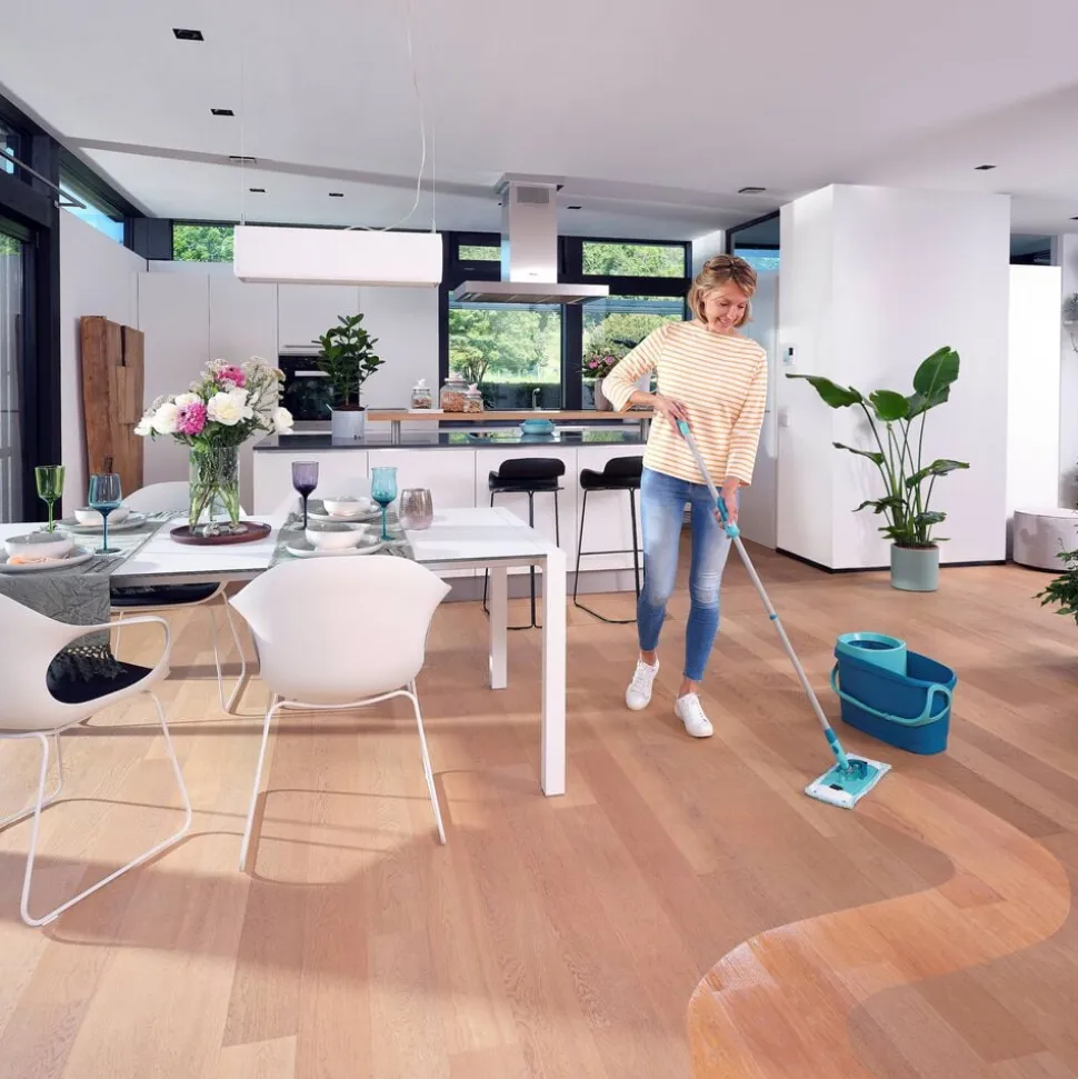 Komplet rengøringssæt bestående af gulvmoppe, 6 l spand og vrider. Clean Twist M Ergo-sættet er det helt rigtige valg til grundig rengøring af alle typer gulve. Teleskophåndtag med 360° kugleleje gør det muligt at bevæge moppen i bølgede linjer og gøre rent under møbler.