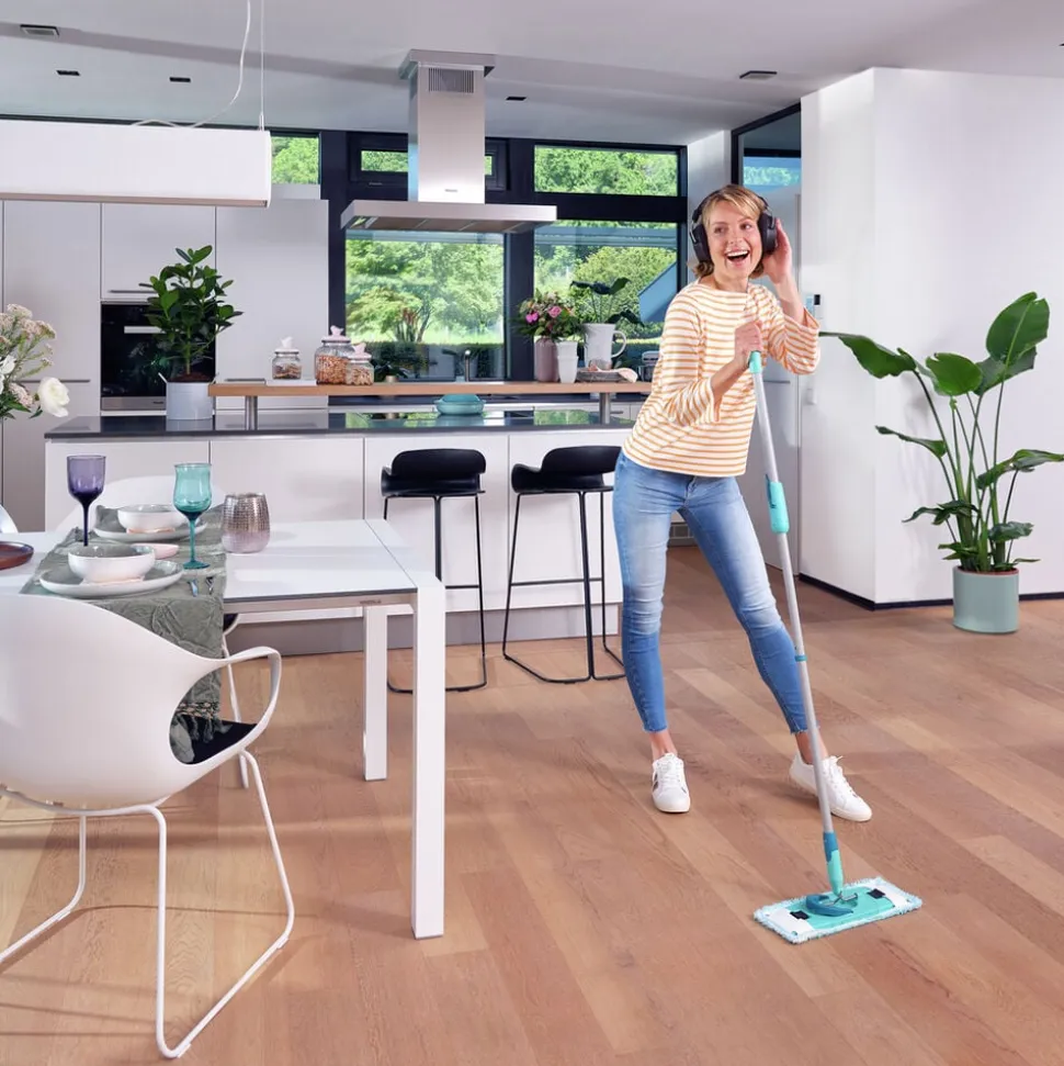 Skånsom rengøring uden ridser, striber eller vandskader. Den superbløde moppeklud er det ideelle valg til sarte gulve som parket, laminat og træ. Den særlige polyesterstruktur gør den ekstra nænsom mod overfladen. Kan vaskes ved 60 °C og bevarer sin rengøringsevne, selv efter gentagen vask.