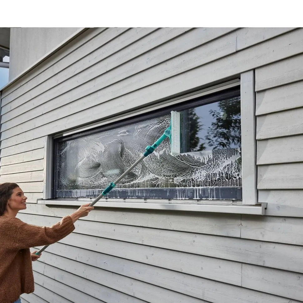 En praktisk løsning til rengøring af både vinduer og vinduesrammer. Den smarte 4i1 vinduesvasker har en 32 cm bred vaskepude og et teleskopskaft, der kan justeres fra 130 til 210 cm, så du uden besvær kan nå selv de høje vinduer. Det bevægelige led med låsemekanisme på håndtaget gør det let at fastholde den rette vinkel. Vaskepuden kan tages af og vaskes i maskine ved 40 °C efter brug.