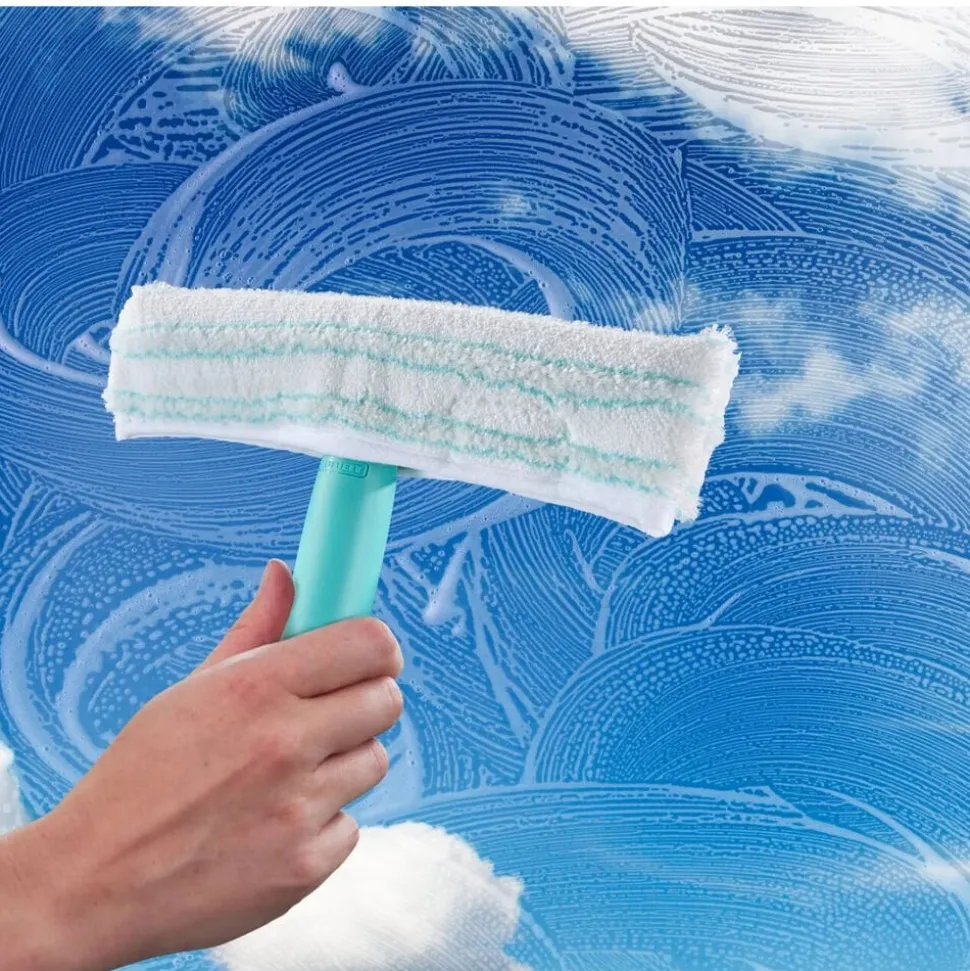 Vinduesvasker til Leifheits Click-System. Aftageligt cover, som kan vaskes ved 40 grader. Coveret dækker siderne, hvilket gør, at man rengør kanten af vinduesrammen samtidig med selve ruden.