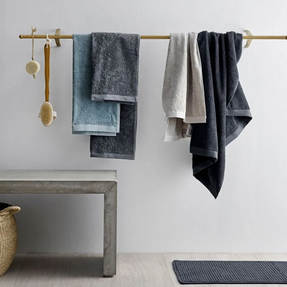 Håndklædet er kraftigt og blødt med en god sugeevne, som sikrer en behagelig følelse ved brug. Vævet bort i top og bund med diskret vævet logo og en strikket strop giver et eksklusivt udtryk.