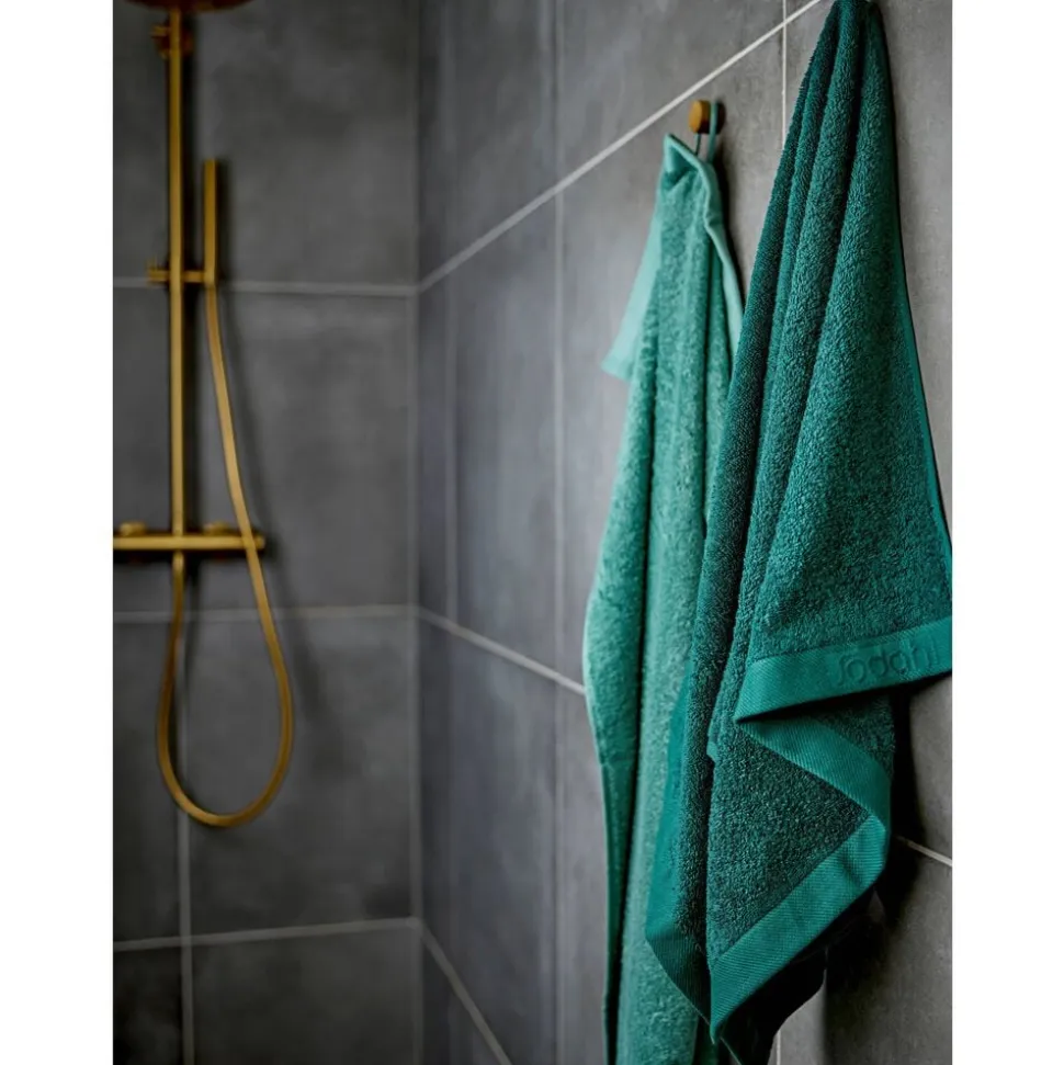Håndklædet er kraftigt og blødt med en god sugeevne, som sikrer en behagelig følelse ved brug. Vævet bort i top og bund med diskret vævet logo og en strikket strop giver et eksklusivt udtryk.