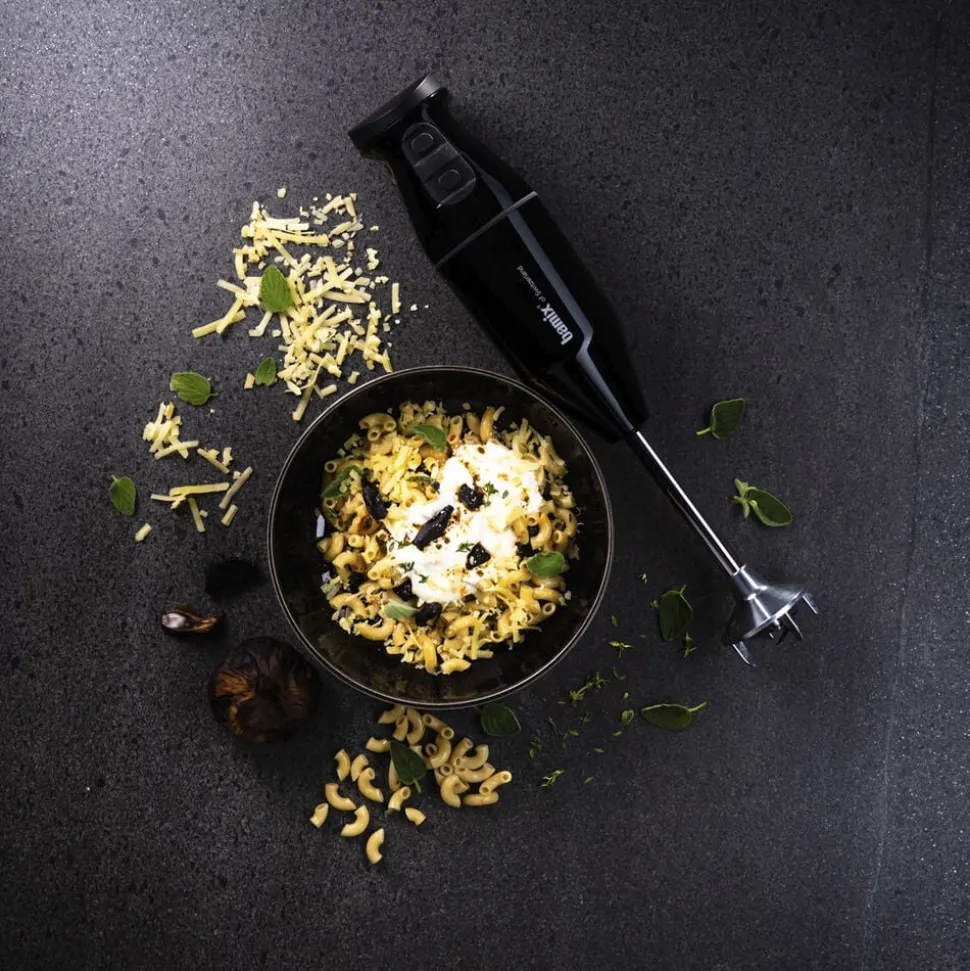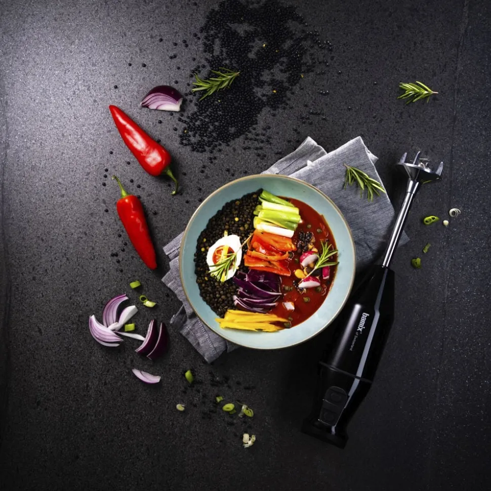 Med din bamix® Cordless og dens tilbehør kan du piske, purere, røre, blende, mikse, mose, knuse og hakke.