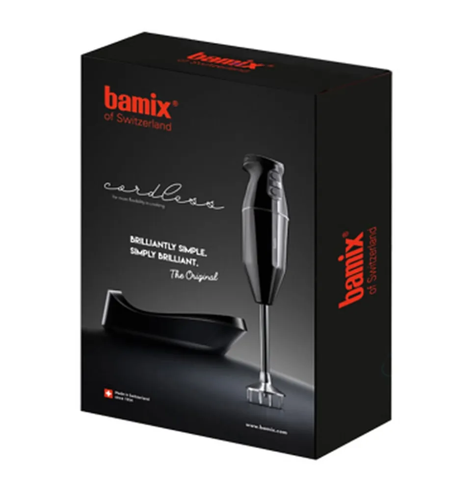 bamix® Cordless-stavblender med en kraftig 10,8 volts motor, der sikrer pålidelig hjælp til selv de hårdeste opgaver i køkkenet. Stavblenderen har to hastighedsindstillinger (8.000 rpm og 13.000 rpm), er 36 cm lang og er trådløs, så du nemt kan tage den med alle steder. Til produktet medfølger en multifunktionskniv, blenderskive, piskeskive og ladestation samt en instruktionsmanual. 5 års garanti på stavblender og lader (2 års garanti på batteriet).