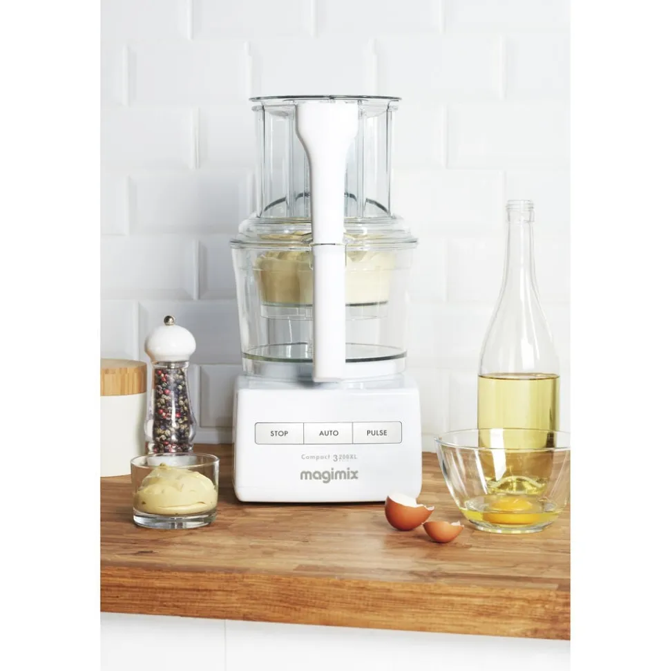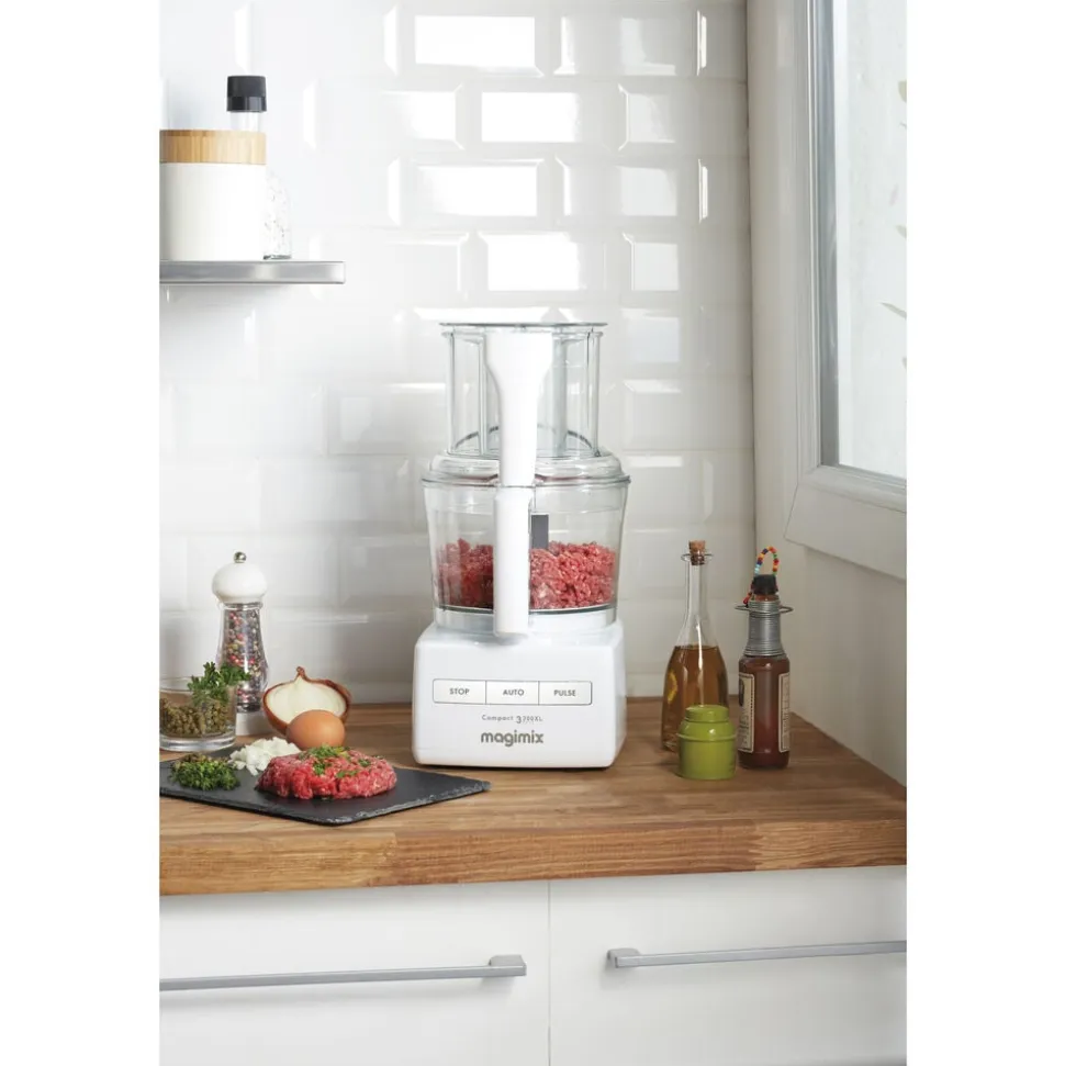 Strømlinet Magimix foodprocessor i høj kvalitet med mange funktioner, der er enkel at betjene ved hjælp af tre knapper. Tre pladsbesparende skåle gør tilberedningen nem og praktisk.