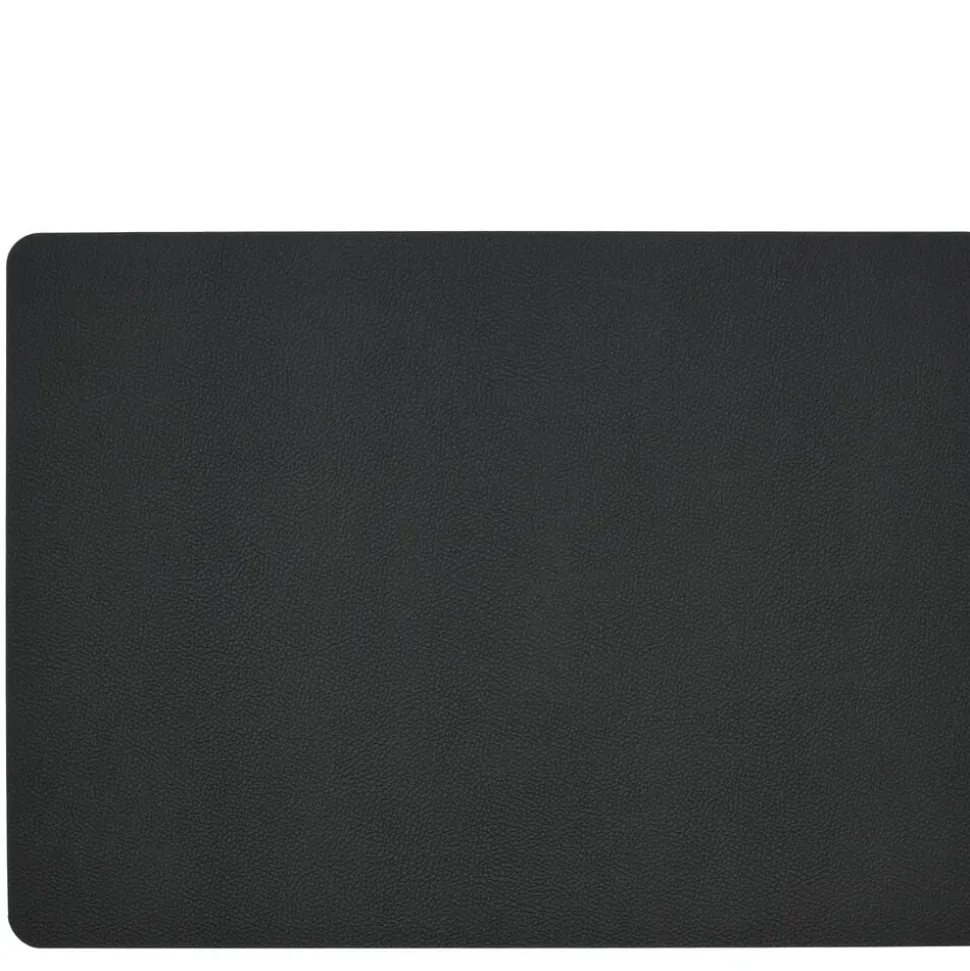 Vendbare dækkeservietter i praktisk vaskbart læderlook giver borddækningen et råt og moderne udtryk. Sort/Creme.