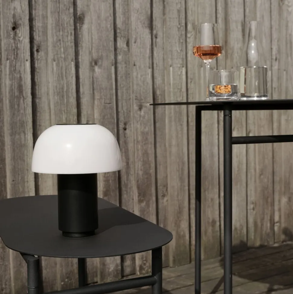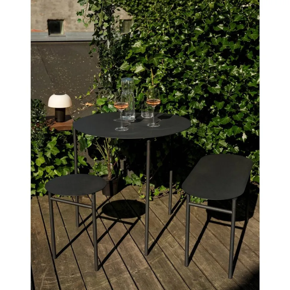Disc-bænken er med sine 90 cm siddebredde perfekt til to. På trods af sit lette udtryk er den solid i brug. Den er udført i pulverlakeret stål og kan derfor tåle at stå ude. Den passer perfekt på altaner i byen eller små sommerhusterrasser. Præcis som resten af Disc-serien kan bænken foldes sammen, så den er let at flytte med eller pakke væk for vinteren. En anden mulighed er at invitere den ind i entreen eller stuen og bruge den til små stillebens og planter.