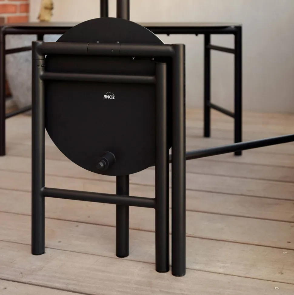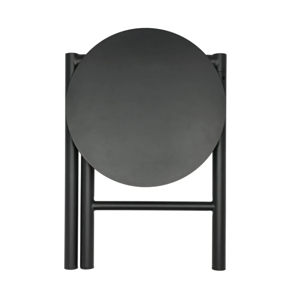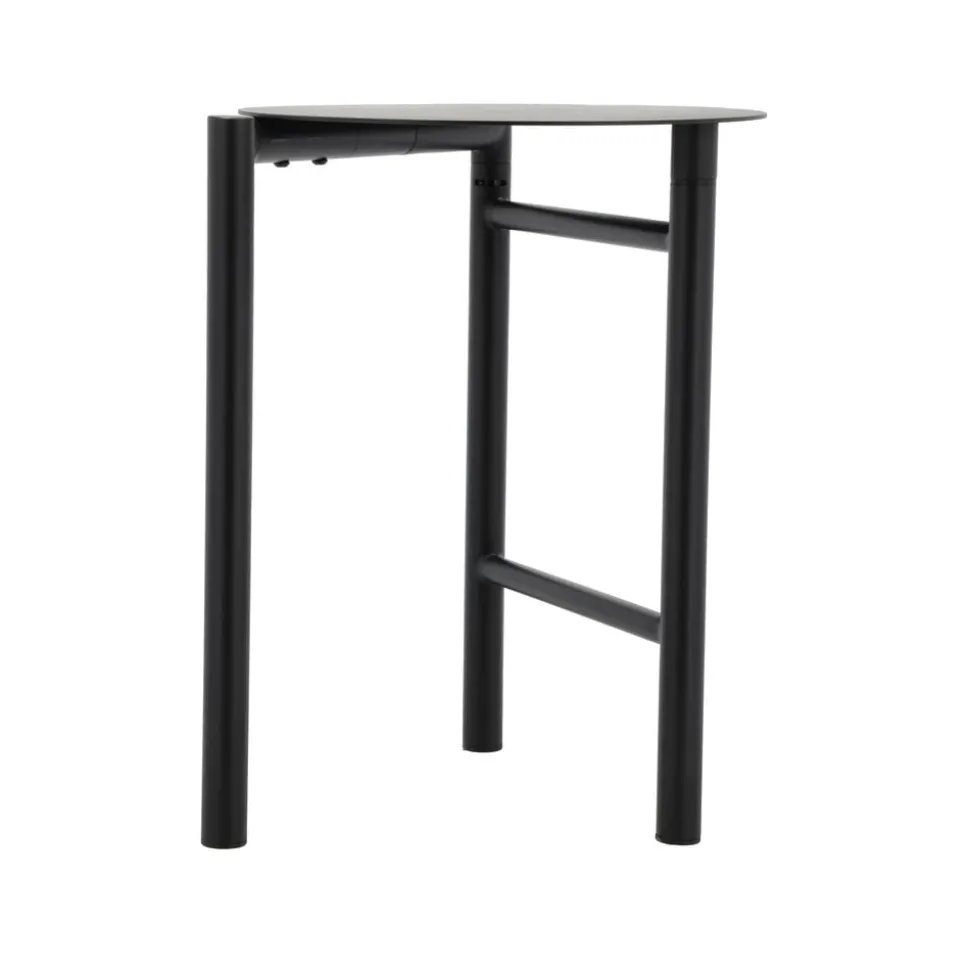 Den trebenede taburet kan let løftes rundt, og når du ikke bruger den, kan sædet vippes op, og den kan klappes sammen. Pladsbesparende og praktisk. Sædets cirkelformede siddeplads og det enkle stel har et næsten ikonisk udtryk. Taburetten er udført i pulverlakeret stål og kan derfor holde til livet både ude og inde. Nyd synet, fleksibiliteten og friheden.