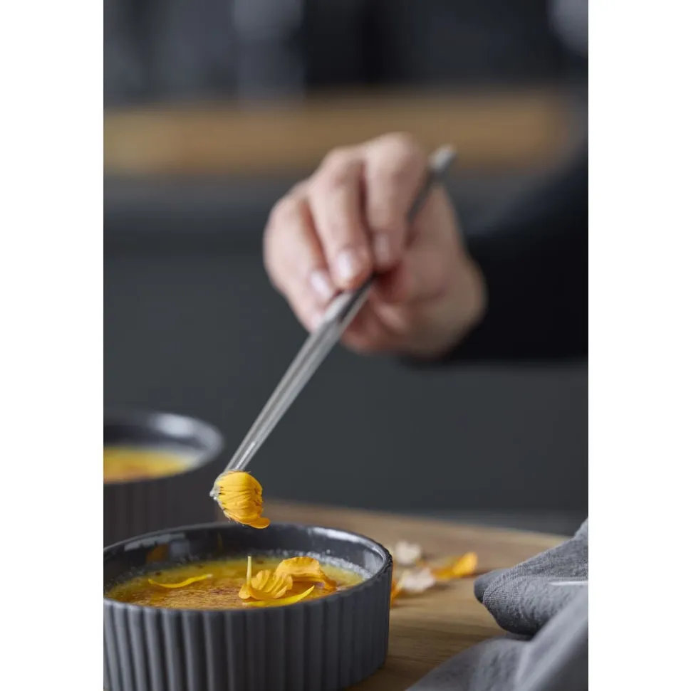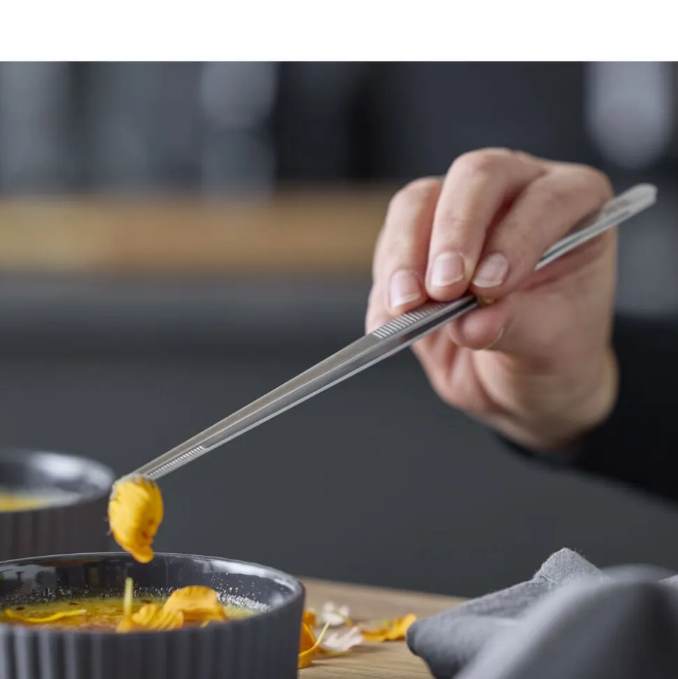 Den praktiske lille pincet af rustfrit stål er oplagt at bruge i både det søde og det salte køkken. Længden på 22 cm gør også pincetten ideel til anretning af mindre emner og dekoration af kager.