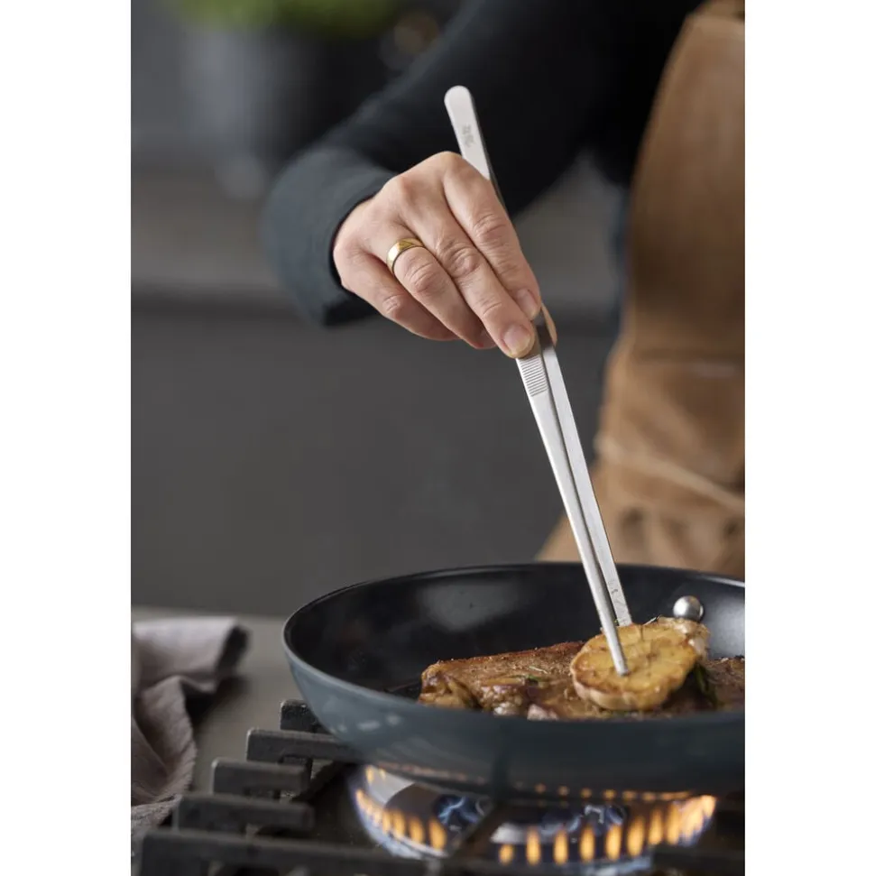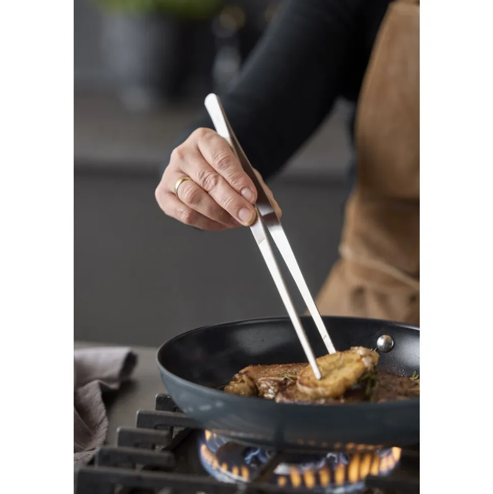 Stegepincetten er 31,5 cm lang og ideel til al slags madlavning, både i det søde og det salte køkken. Den sikrer dig et godt greb om madvarerne, når du steger eller griller og skal vende kød og grøntsager.