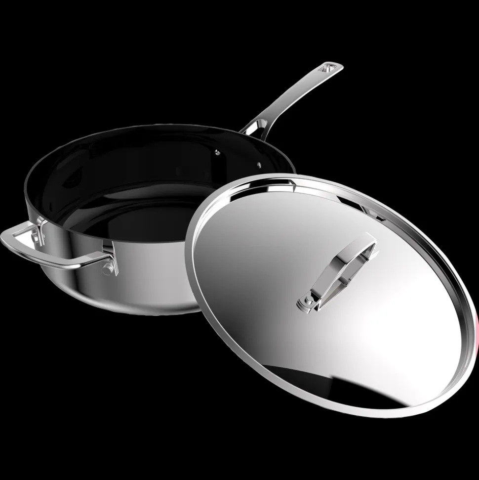 Sauterpande med keramisk non-stick og låg, 26 cm. Divette-serien fra Pillivuyt Gourmet er fremstillet i 3-ply rustfrit stål med en silkeblød satinfinish på ydersiden, som giver et enkelt og elegant udtryk. Konstruktionen af to lag rustfrit stål med et aluminiumlag imellem betyder, at varmen fordeles hurtigt og fastholdes jævnt. Indvendigt har seriens pander en sort keramisk non-stick-belægning, der gør det nemt at stege med minimal brug af fedtstof – og endnu nemmere at rengøre efter brug.