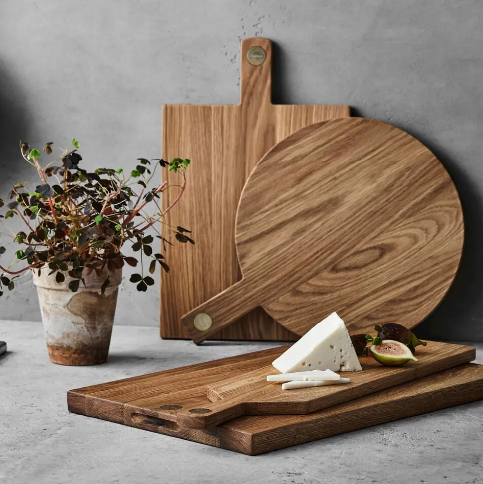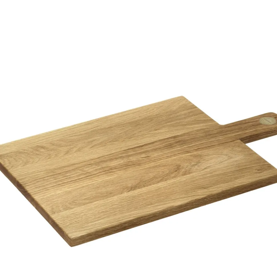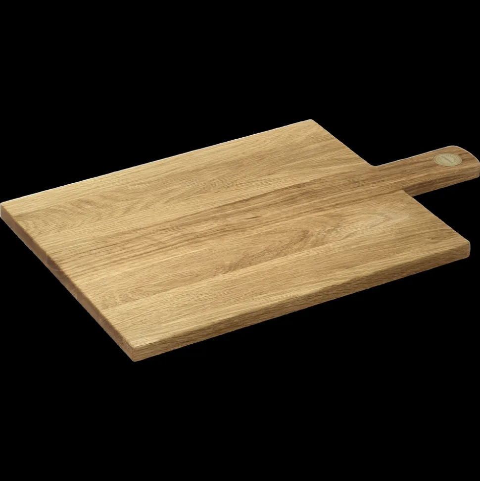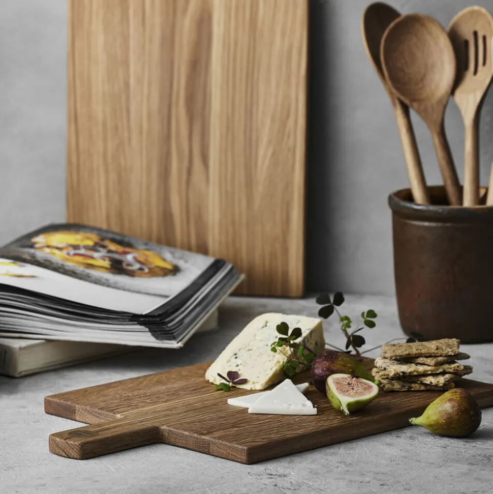 Et godt skærebræt-/serveringsbræt er uundværligt i køkkenet – og endnu bedre, når det også kan bruges til at servere på. Det har en levende struktur og en varm glød, der passer ind i ethvert køkken. Brug brættet til anretning af tapas, brød eller snacks – eller lad det stå fremme og pynte, når det ikke er i brug. Varen er produceret i FSC®-certificeret egetræ (FSC-C166612).