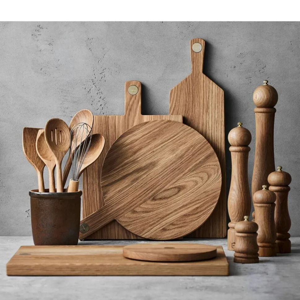 Et godt skærebræt er uundværligt i køkkenet – og endnu bedre, når det også kan bruges til at servere på. Det har en levende struktur og en varm glød, der passer ind i ethvert køkken. Brug brættet til anretning af tapas, brød eller snacks – eller lad det stå fremme og pynte, når det ikke er i brug. Varen er produceret i FSC®-certificeret egetræ (FSC-C166612).