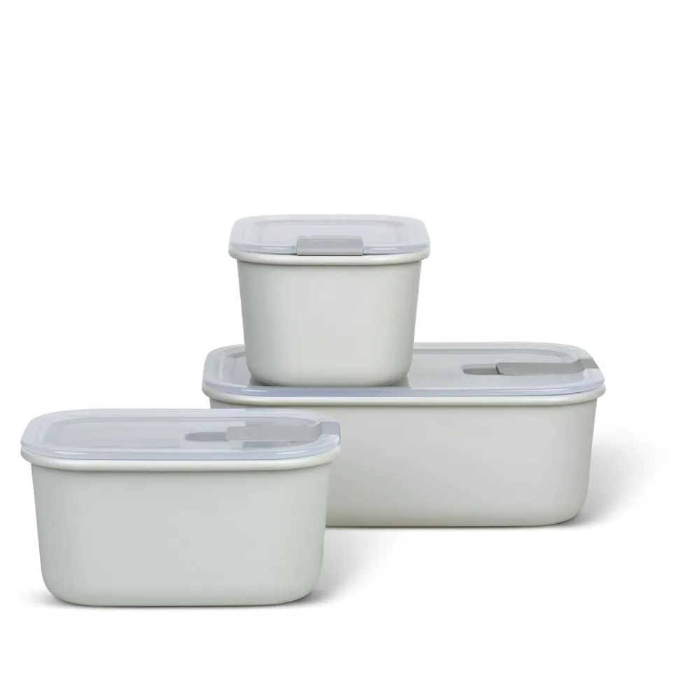 Dette sæt indeholder 3 bokse i PP-plast bestående af 1 x 1000 ml og 2 x 450 ml i farven Nordic white.